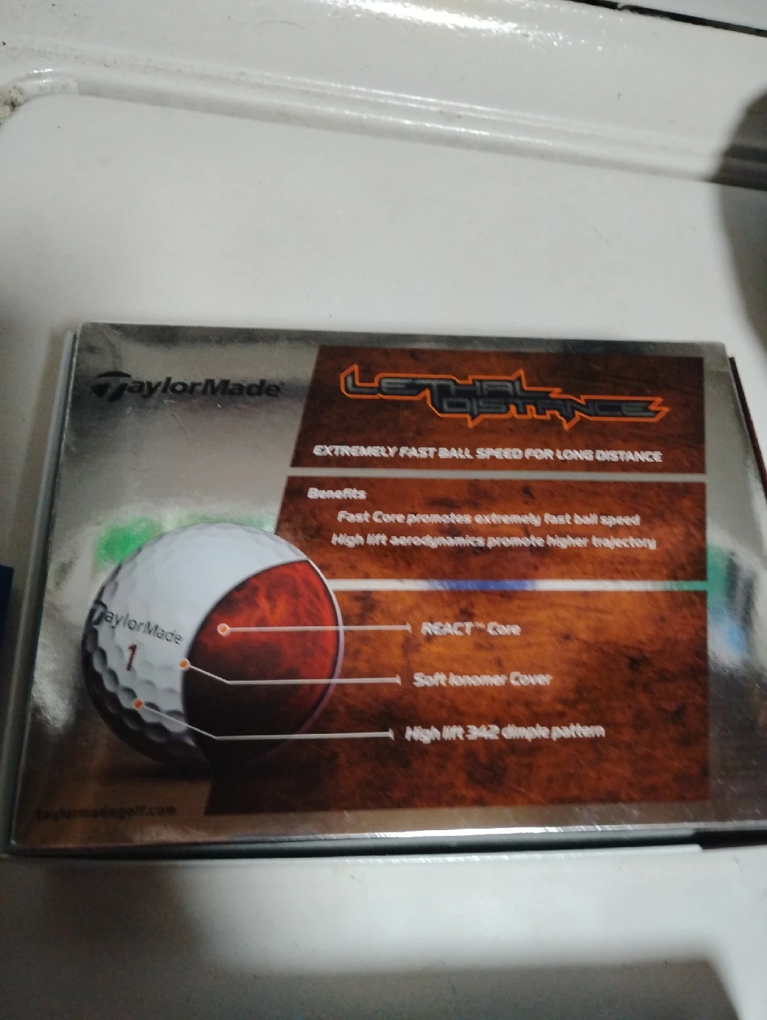 13Selling a brand new, unopened box of TaylorMade Lethal Distance golf balls. These are designed for long distance with an extremely fast ball speed, thanks to their 2-piece construction. The box highlights the benefits of a fast core that promotes speed, high lift aerodynamics for a higher trajectory, a REACT core, soft ionomer cover, and a high lift 342 dimple pattern. Perfect for improving your game on the course!