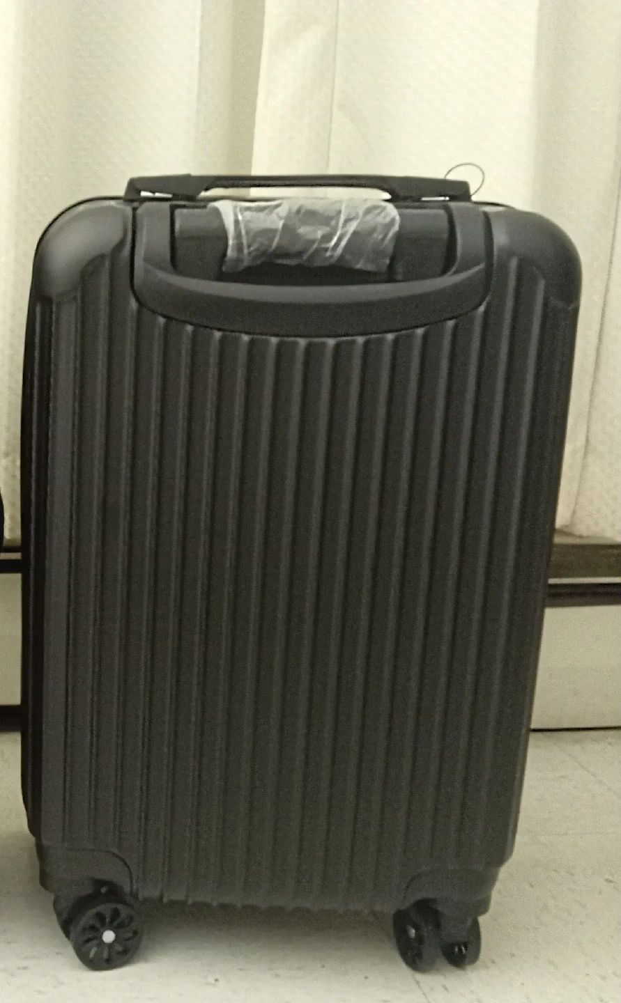 Brand new hard shell suitcase — never used, still has plastic wrap on the handle.