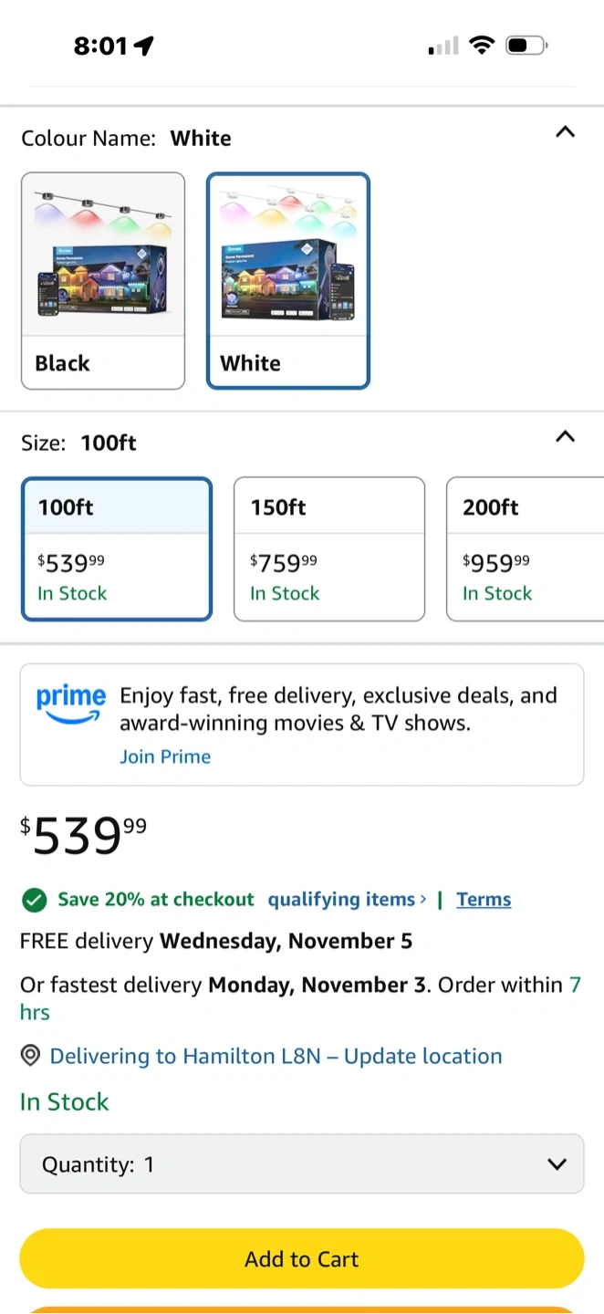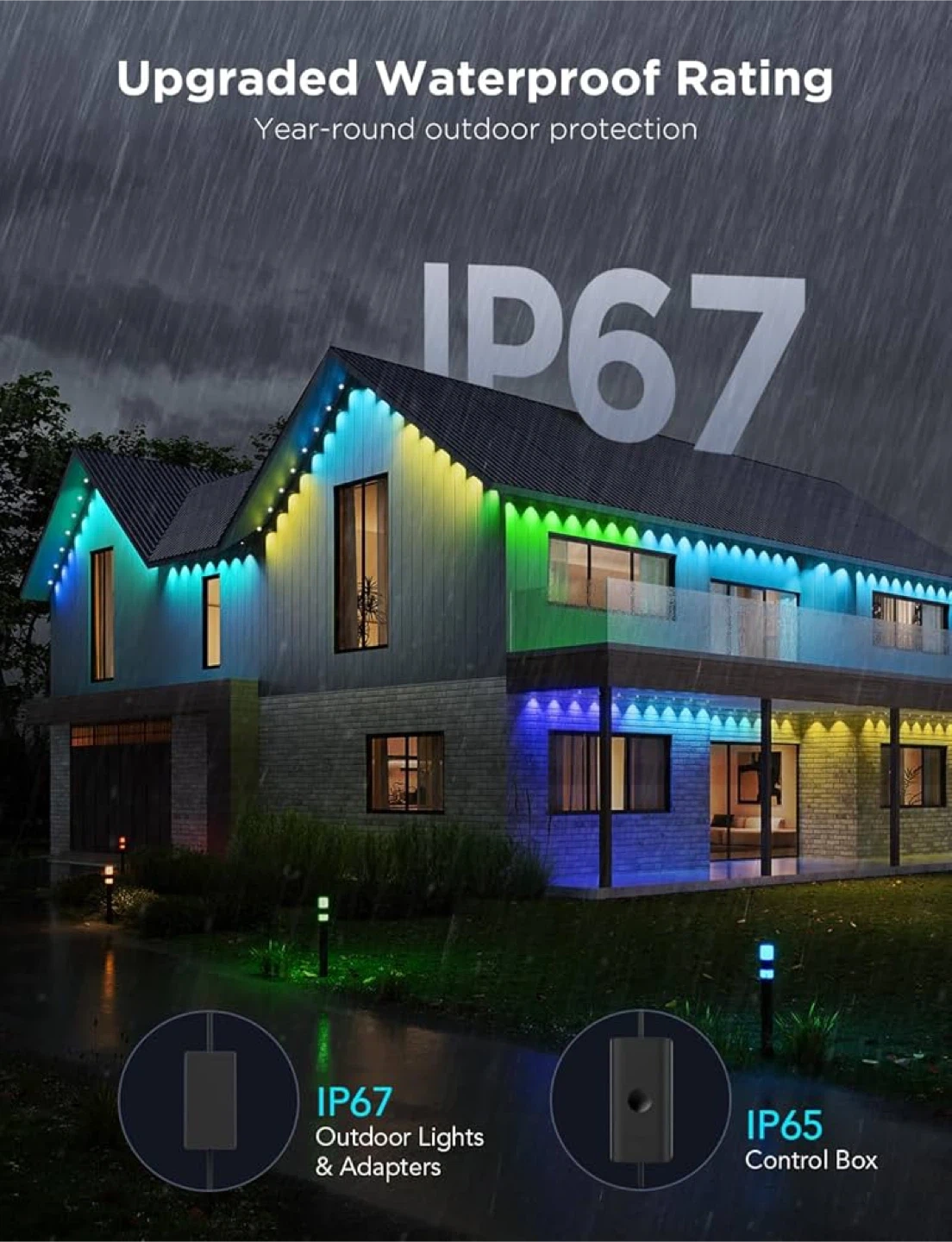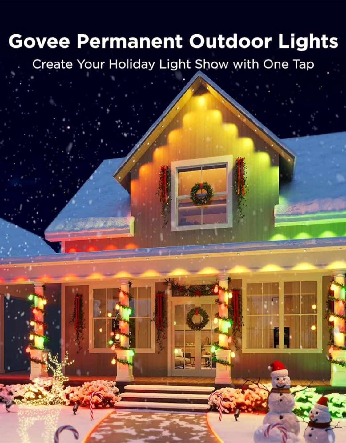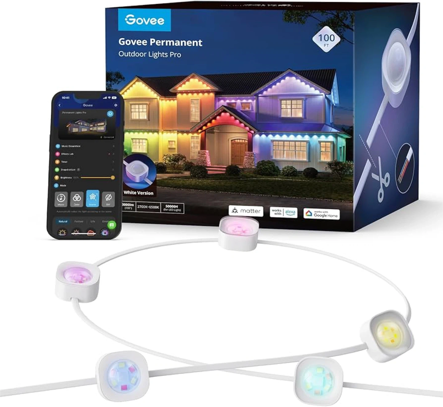 Selling a set of Govee Permanent Outdoor Lights Pro in the white version! They're designed to create a holiday light show with a single tap. These lights are waterproof with an upgraded IP67 rating for year-round outdoor protection. They work with Alexa and Google Home for easy control. The box includes everything you need to set them up!