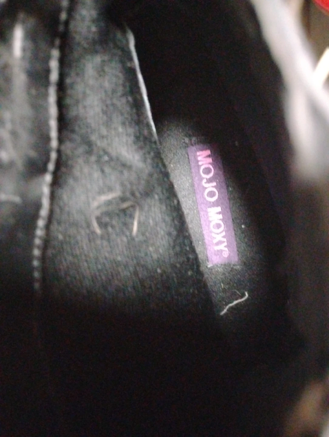 Selling a pair of Mojo Moxy black leather booties. They are in size 11M and made in China. The upper is leather and the balance is man-made.