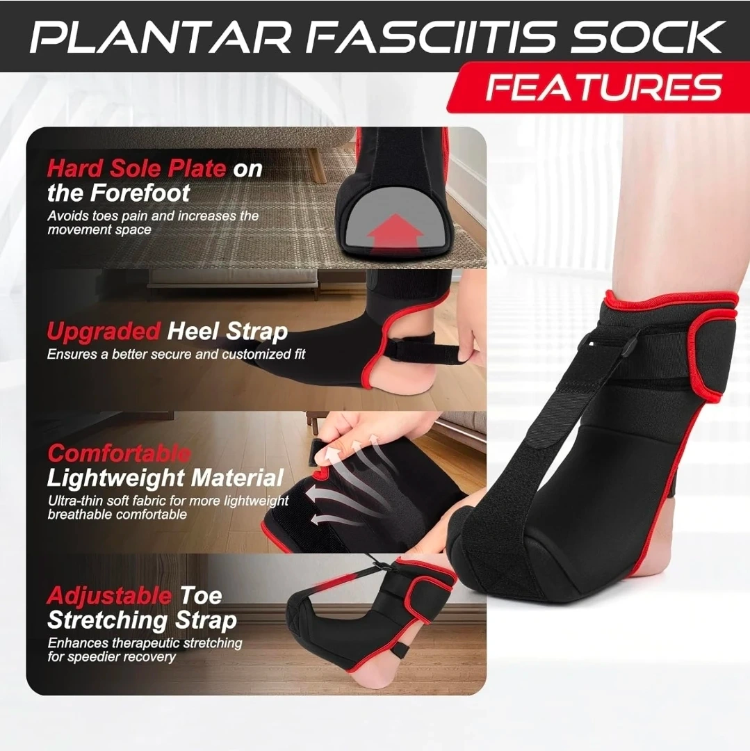 85Get relief from plantar fasciitis and other foot pains with this night splint sock! It features a hard sole plate on the forefoot and an upgraded heel strap for a secure fit. The comfortable, lightweight material is ultra-thin and breathable. The adjustable toe stretching strap enhances therapeutic stretching for speedier recovery. Size M (Men's 8-11.5, Women's 9-12.5). Location: Taunton and Townline Check out my other listings