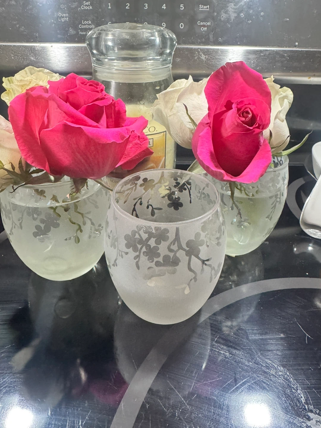 Lot of 20 etched glass holders which can be used as bud vases, tea light or votive holders. Approximately 3.5” or 9.5 cm high and 2.5” 6cm wide opening.