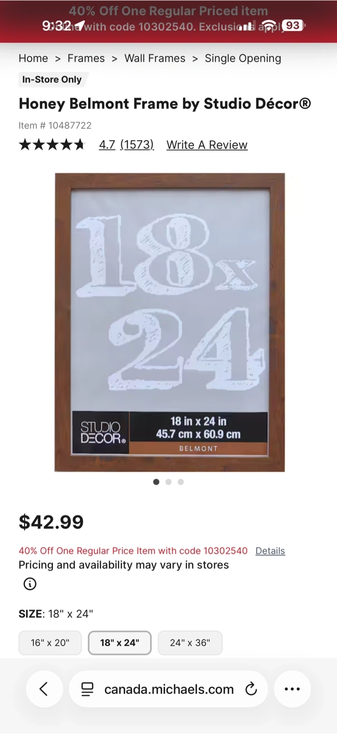 Brand new frame. https://canada.michaels.com/product/honey-belmont-frame-by-studio-decor-10487722?michaelsStore=3983&inv=6