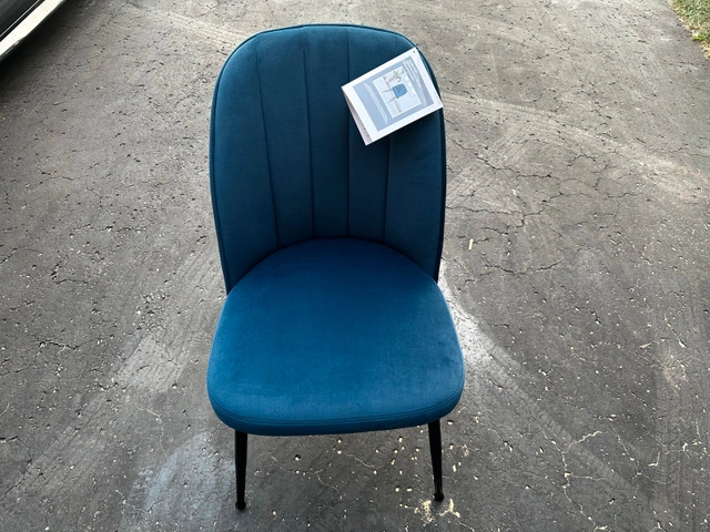 Brand new in box. Retails for $150 plus tax in stores. Quantity available. Add a touch of elegance to your dining space with this stylish blue velvet dining chair! This chair features a soft velvet upholstery, a supportive backrest, and sleek metal legs, making it both comfortable and chic. Perfect for upgrading your dining room or adding extra seating to any room. This chair is brand new in the box and is ready to assemble and enjoy! Here are some key features: * Soft velvet upholstery * Sleek metal legs * Supportive backrest * Easy assembly Looking to add a touch of flair to your home? Don't miss out on this fantastic chair! And remember, if the ad is still up, the chair is still available!