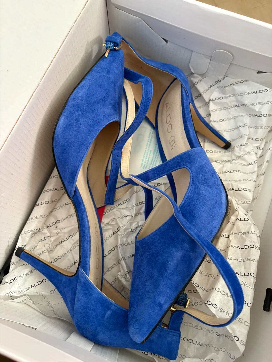 Selling a pair of Aldo heels in a vibrant blue colour! They're a size 8.5 and come in the original box. Perfect for adding a pop of colour to any outfit!
