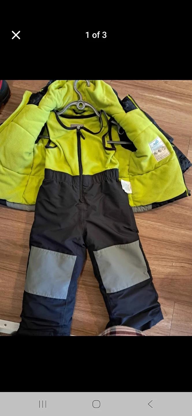 Selling a Jupa snowsuit in size 2T. It's a stylish black and green colour. The shell is made of polyester and the lining is polyurethane. Perfect for keeping your little one warm and dry this winter!