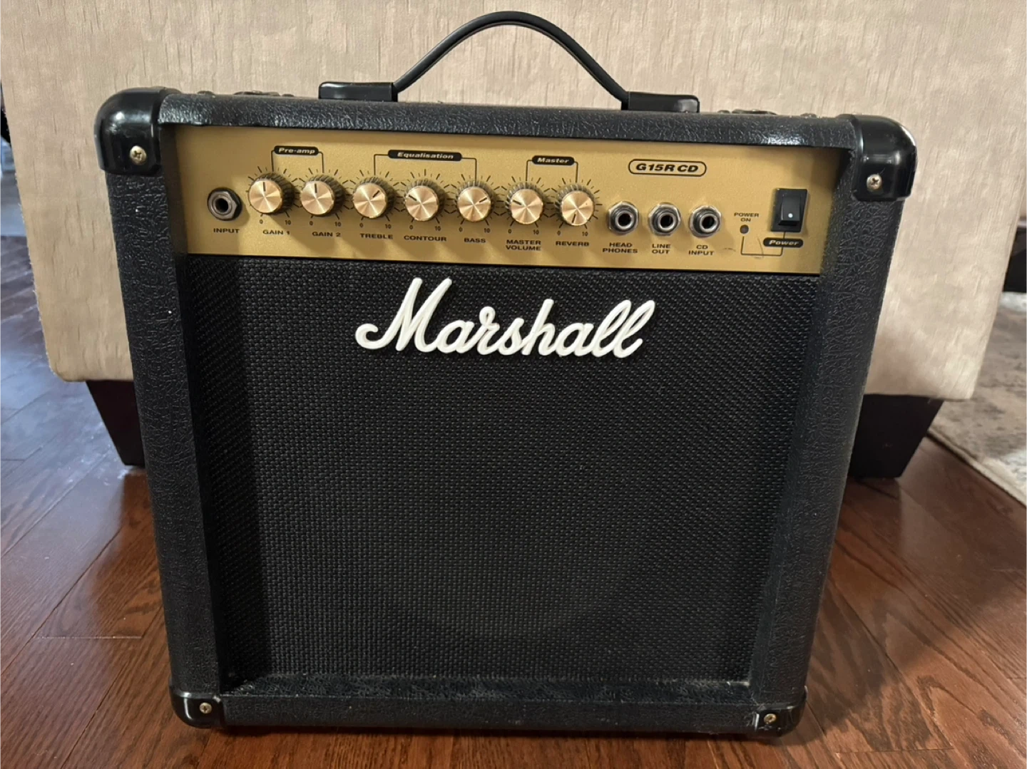 Selling a Marshall G15R CD guitar amplifier. It's in good condition and ready to rock! This amp features a range of controls for pre-amp, equalization, and master volume, so you can dial in your perfect tone. Perfect for practice or small gigs!