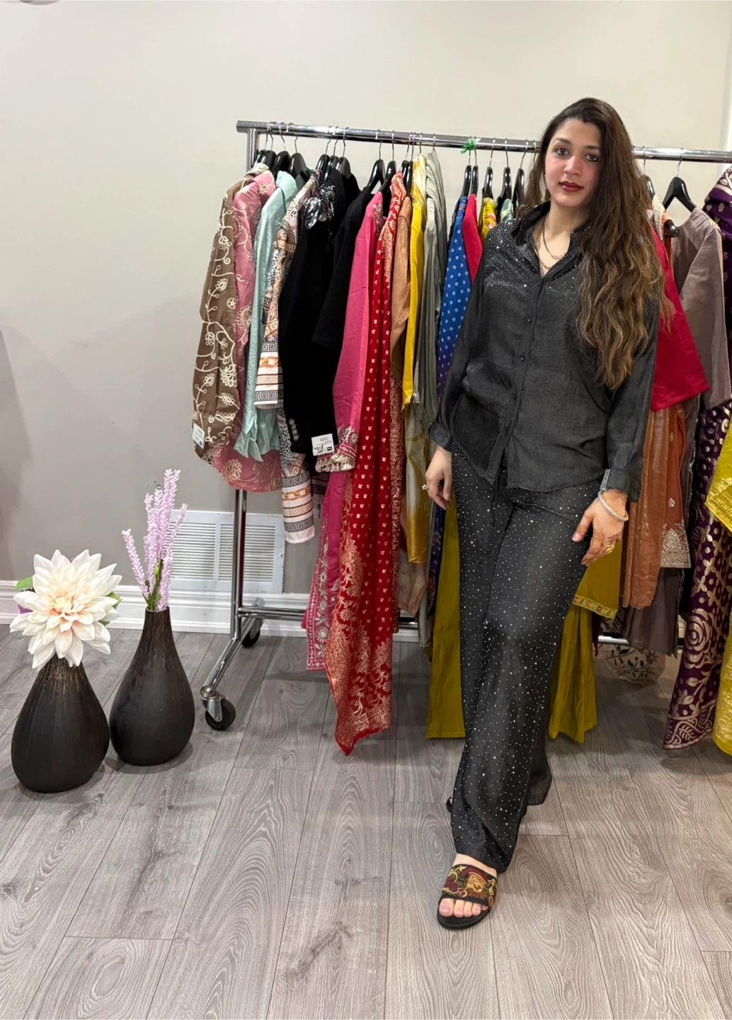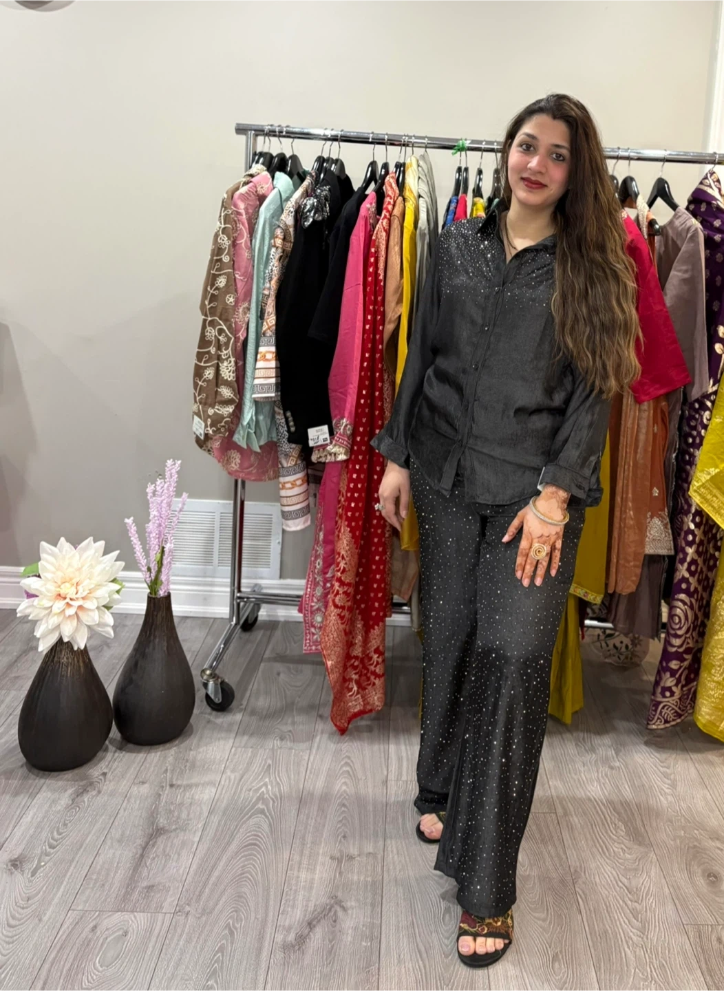 Beautiful cordset in dark grey colour..Sequence detailing on the neck and pants..