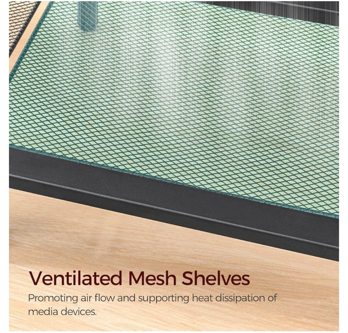 Looking to sell this TV stand with a rustic brown top and black metal frame! It's in great shape and ready for a new home. It features ventilated mesh shelves to help with airflow and heat dissipation for your media devices. The dimensions are approximately 120cm wide and 50cm tall. Great for any living room!