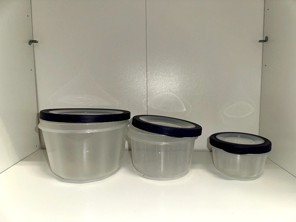 106Selling a set of three round food storage containers! They're in great condition and perfect for storing leftovers or packing lunches. The lids fit snugly to keep your food fresh