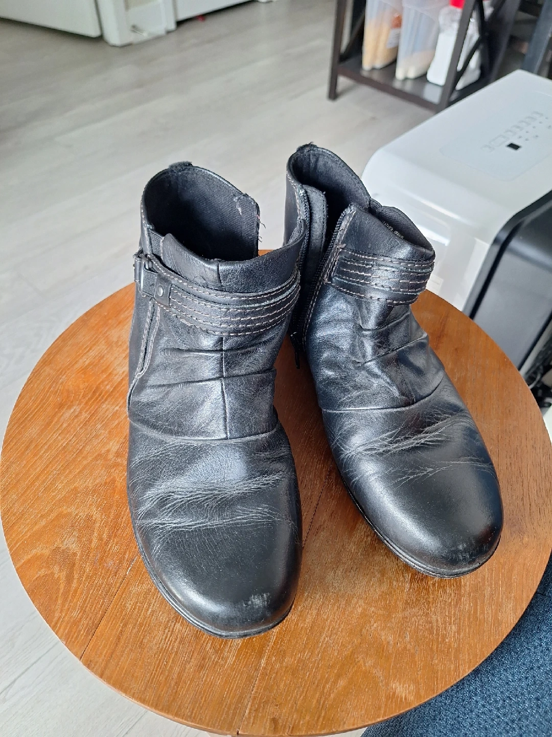 Here are some Earth Origins Collection Glendale ankle boots in black leather! They're a size 8 wide. Comfortable boot for all day on your feet. Gently used but lots of life left in them and ready for a new home.