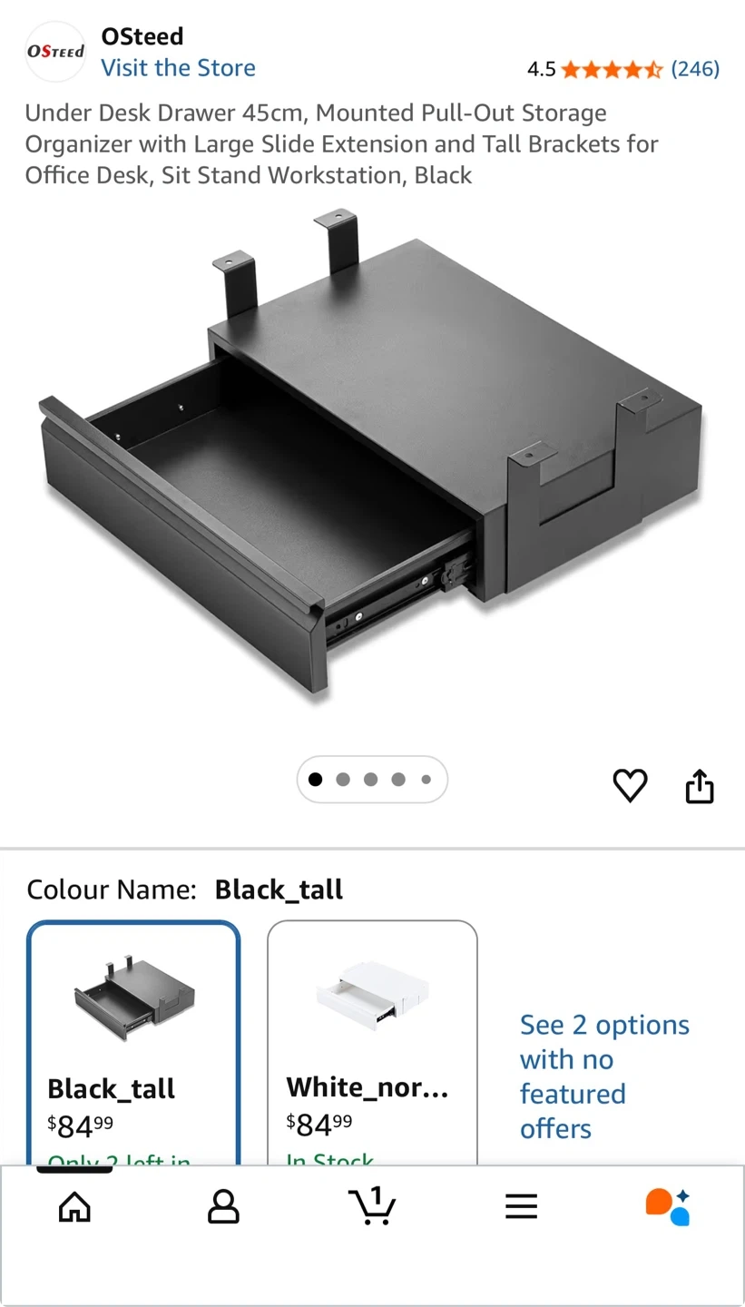 OSTEED Under Desk Drawer 45cm Black