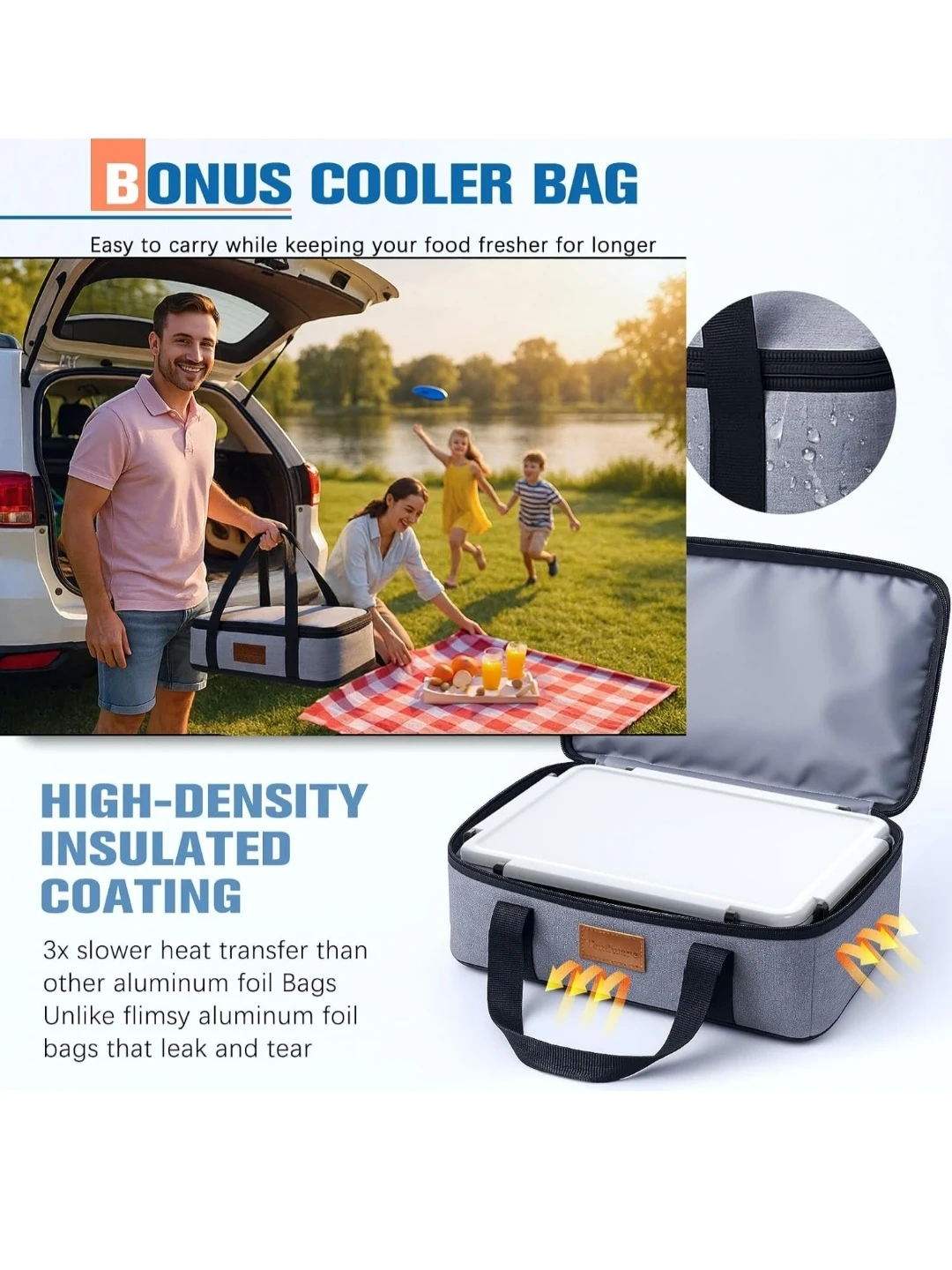 Tendware divided food container is made of high-quality PP material. It features different-sized compartments to hold various foods separately. This container is dishwasher safe and comes with an insulated bag and reusable ice pack for optimal cooling performance. It's perfect for picnics, camping, and outdoor events!