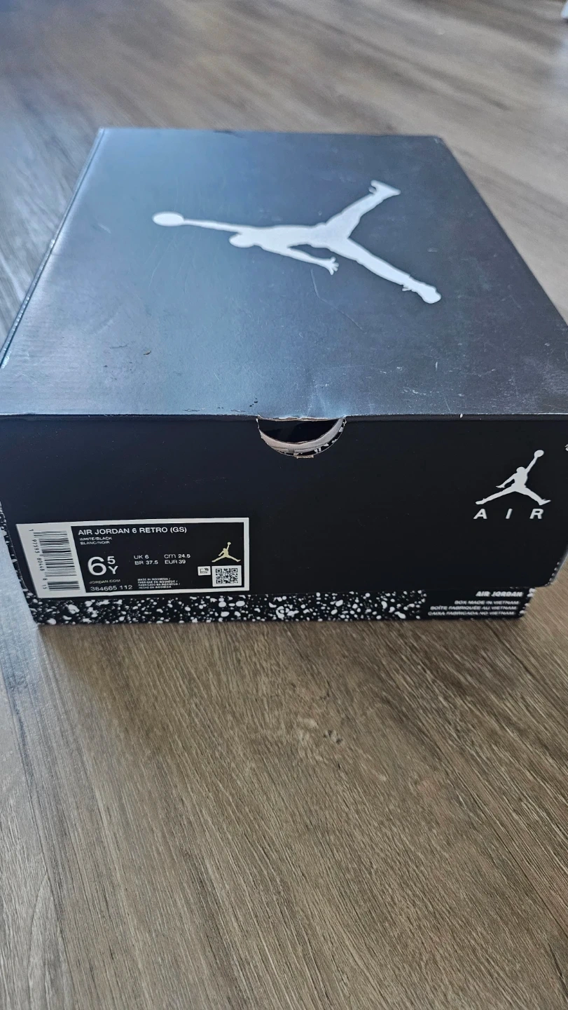 Air Jordan 6 Retro (GS) Size 6.5 White Black Sneakers