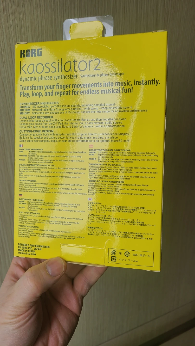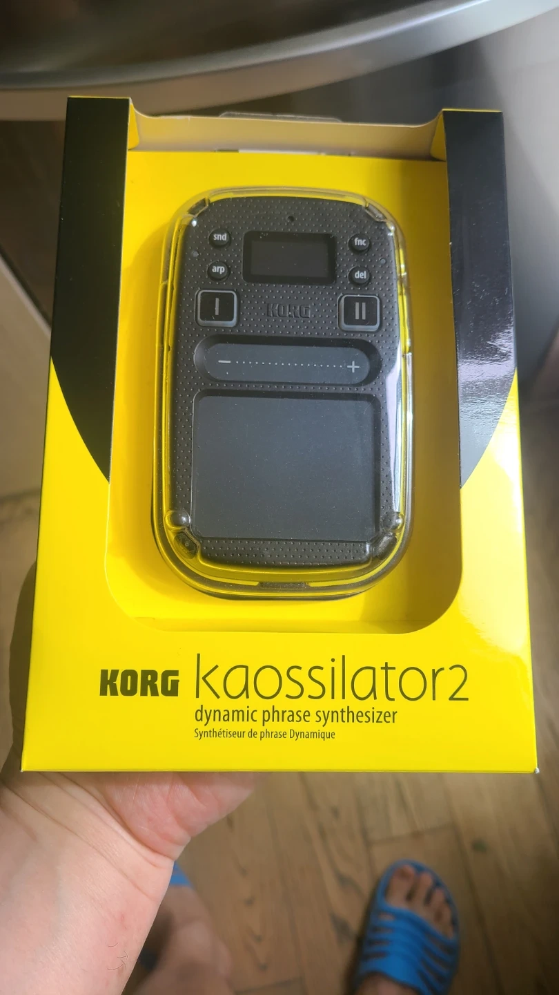 The Korg Kaossillator 2 dynamic phrase synthesizer lets you transform your finger movements into music, instantly. Play, loop, and repeat for endless musical fun! Features 100 synth programs and 100 phrase loop programs.