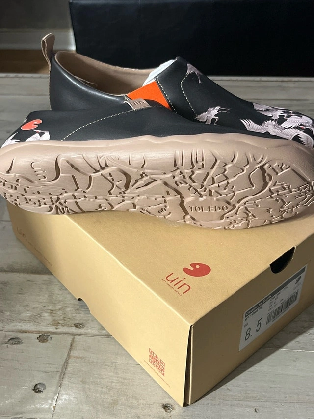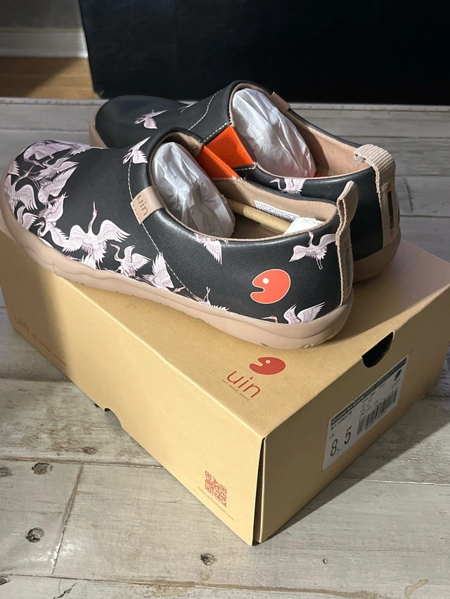 Step into unique style with these new UIN Women's Toledo Crane slip-on shoes, size 8.5, featuring eye-catching crane embroidery on a comfortable, lightweight design. These shoes combine artistry and comfort, making them a standout addition to your footwear collection. Note these shoes fit on the smaller side. Pick up in Brampton near Sheridan College