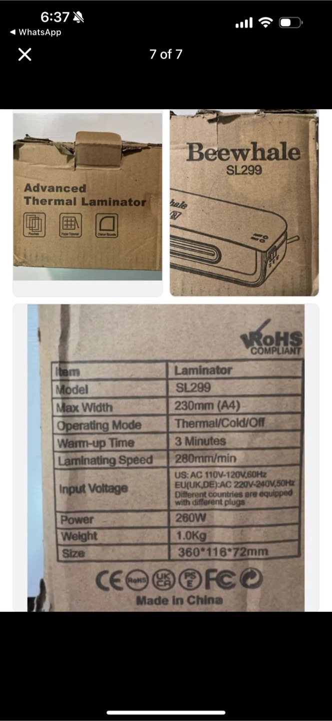 Here's a Beewhale SL299 A4 laminator in great condition! It's an A4 size laminator that can handle pouch thicknesses of 80-125mic and roller widths of 230mm. It's ready to help you with all your laminating needs