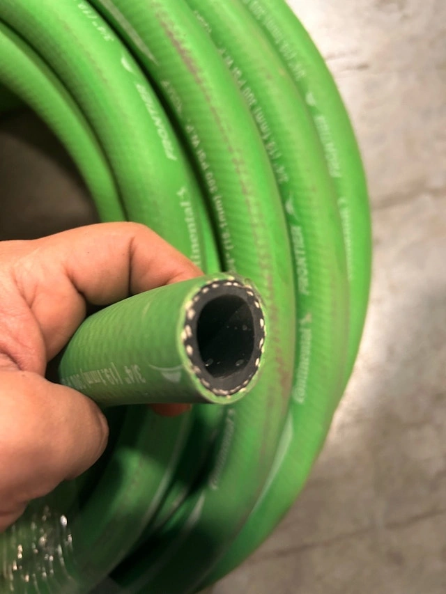 New Continental Frontier 3/4" 300 PSI green water hose. Perfect for various watering and cleaning tasks. Condition: Used - Good. Cash accepted.