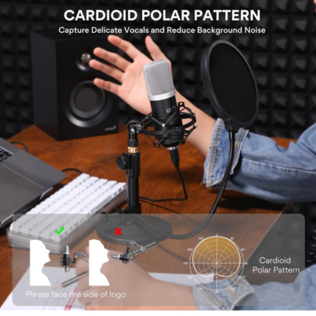 USB Podcast Microphone Kit,uhuru Professional 192KHZ/24Bit Condenser Streaming Cardioid Computer Microphone Compatible with PC, Laptop for Recording,Gaming,Skype and YouTube