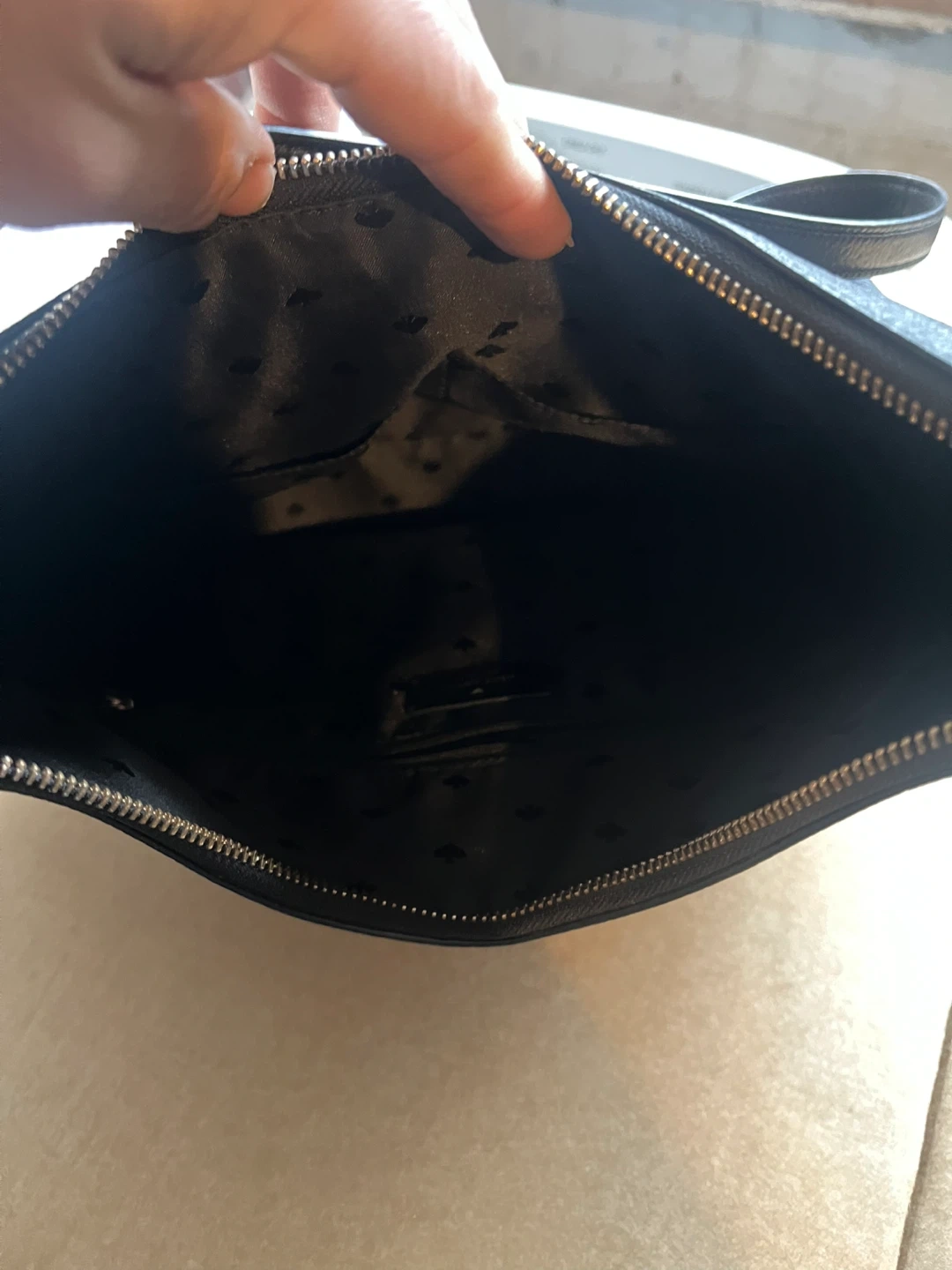 Selling a gently used Kate Spade shoulder bag in black leather. It's a stylish and versatile bag, perfect for everyday use! The bag features a zipper closure and an adjustable shoulder strap.