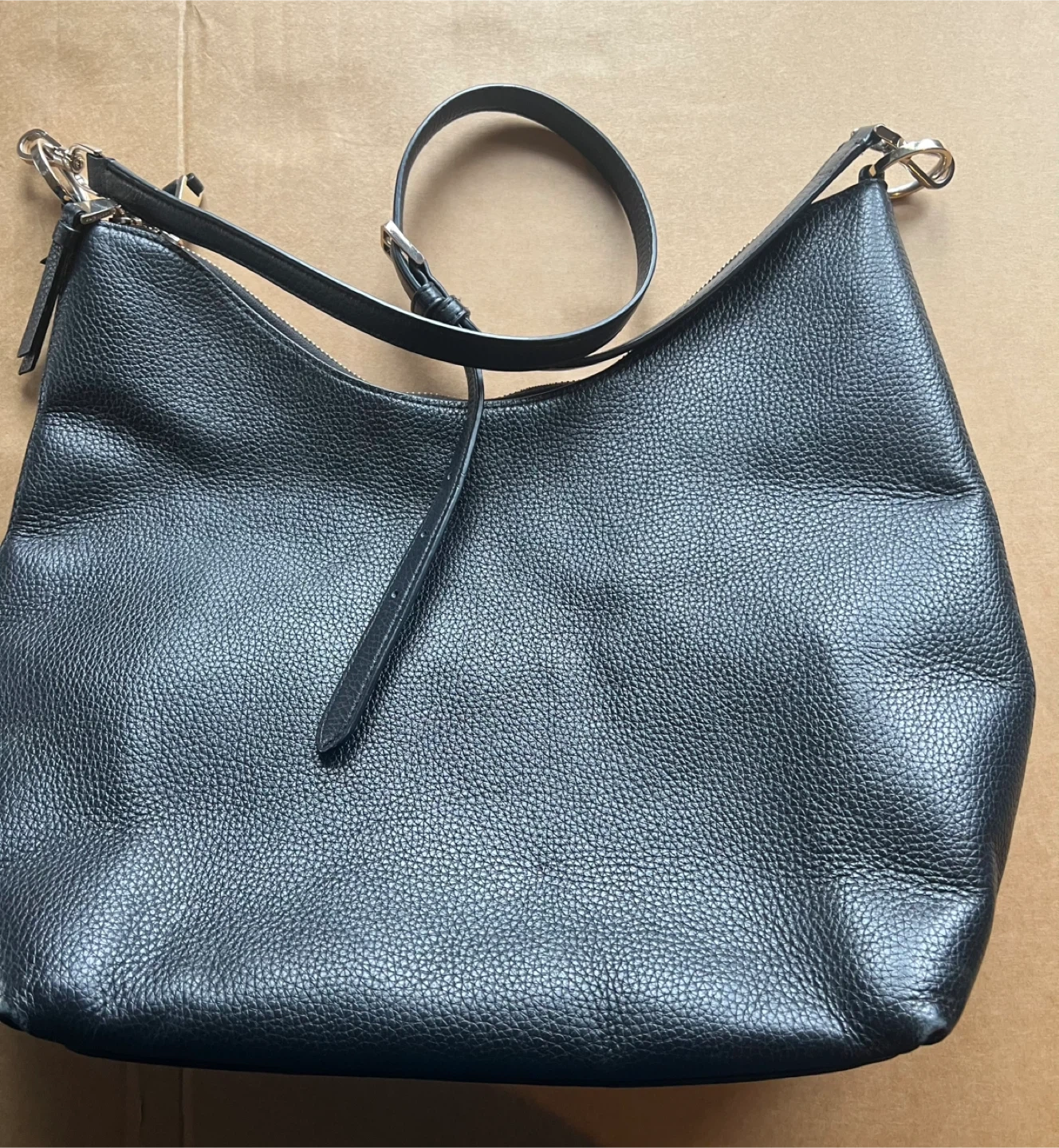 Selling a gently used Kate Spade shoulder bag in black leather. It's a stylish and versatile bag, perfect for everyday use! The bag features a zipper closure and an adjustable shoulder strap.