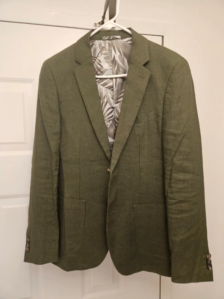 Selling a BLAQ Melbourne blazer in size small! It's a stylish piece with a unique leaf-patterned lining. The blazer is in great condition and ready for a new home