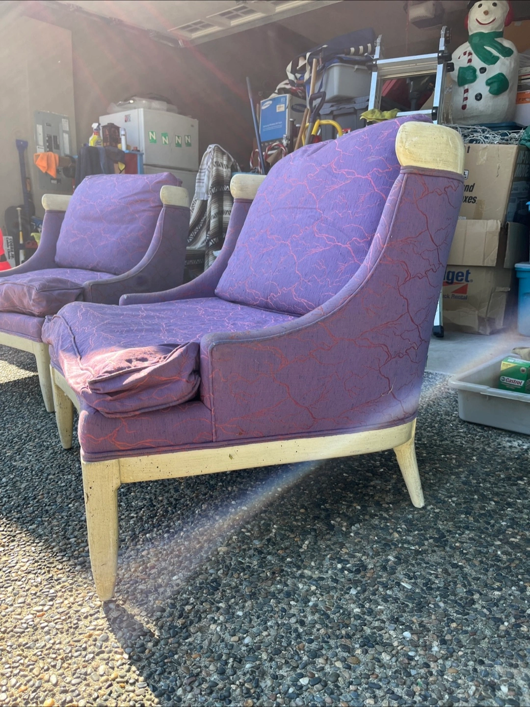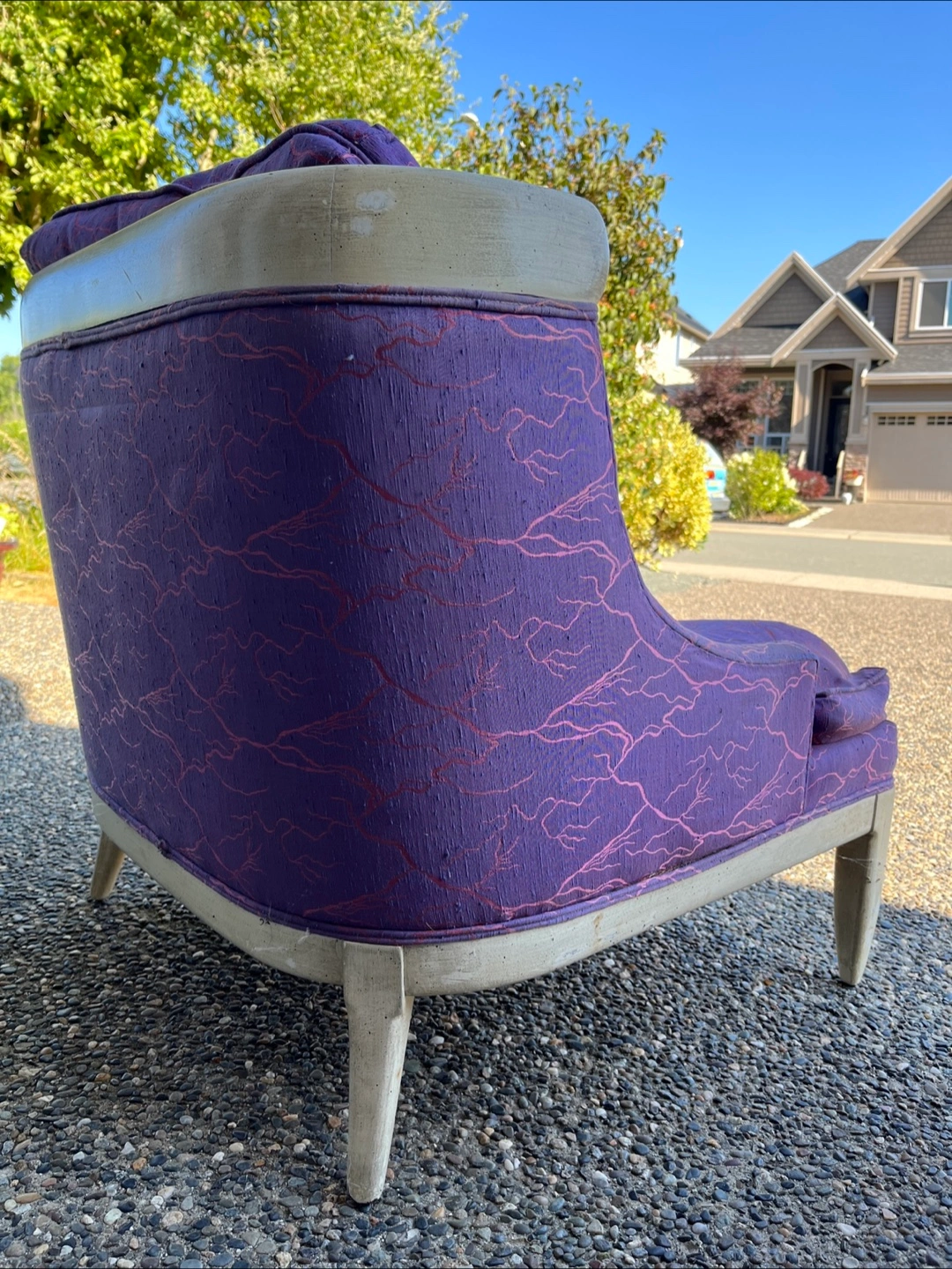 2- Vintage stylish purple accent chair! It would be perfect for a living room or bedroom. The chair features a unique pattern and a comfortable design.