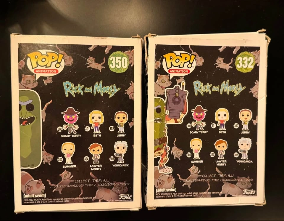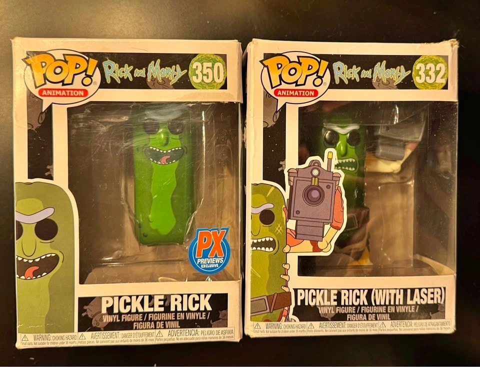 Two Funko Pop figures: #332 Rick and Morty Pickle Rick with Laser and #350 Rick and Morty Pickle Rick. Figures have never been removed from their boxes, though the boxes are in less than perfect condition. Asking $25 for both, but open to reasonable offers. Pick up in Somerset.