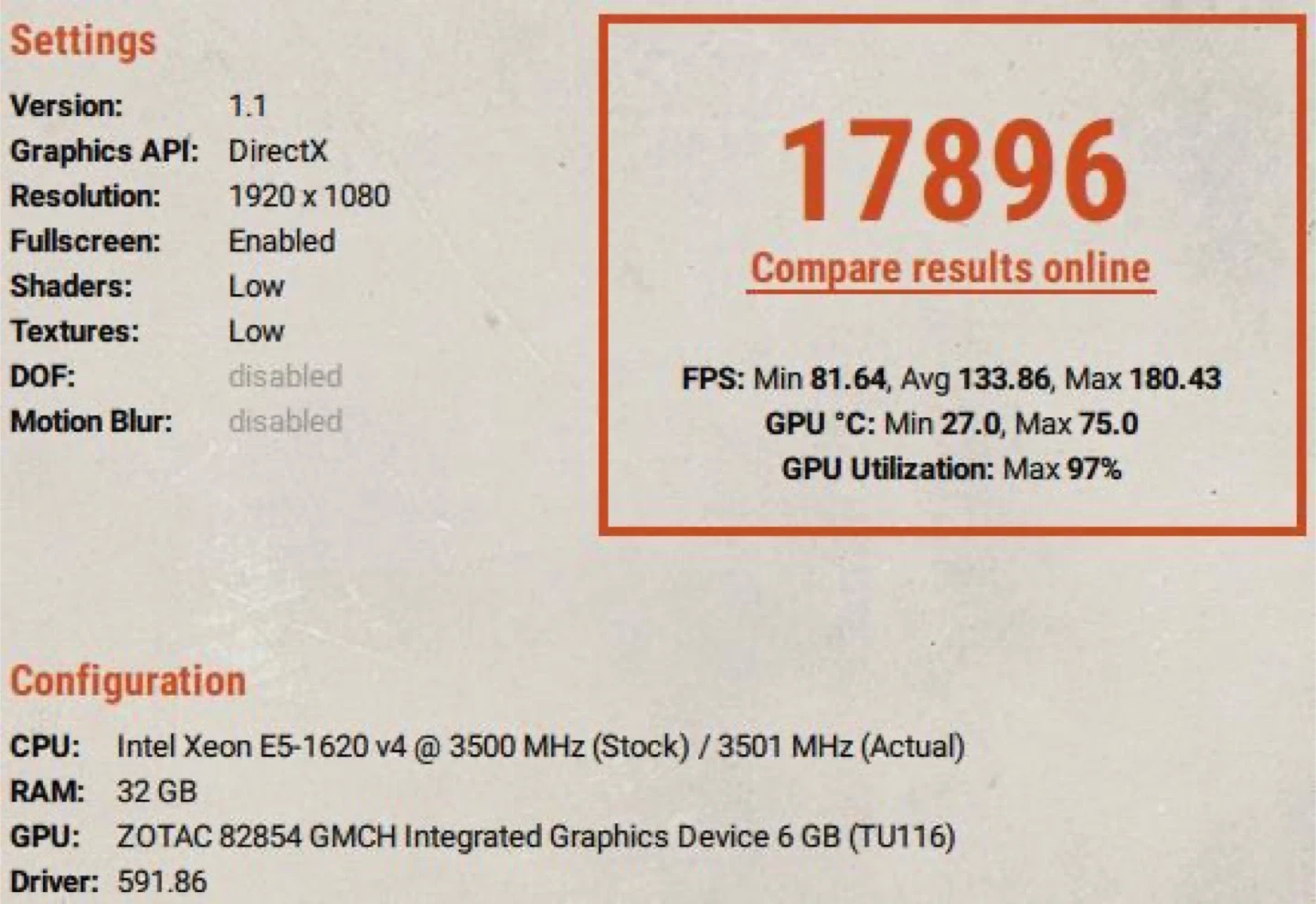 1080p Avg 133.86 FPS / Max 180.43 FPS
