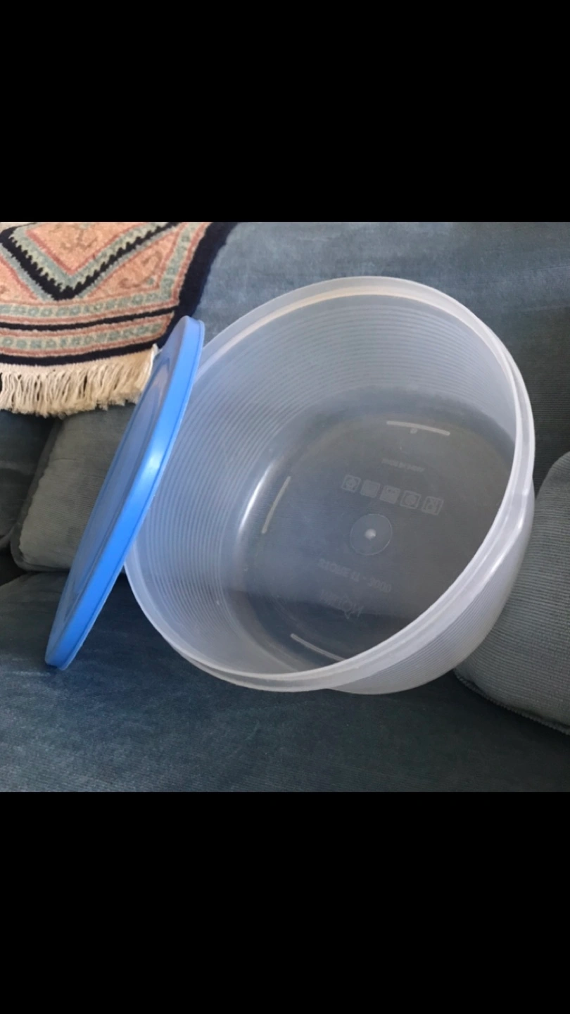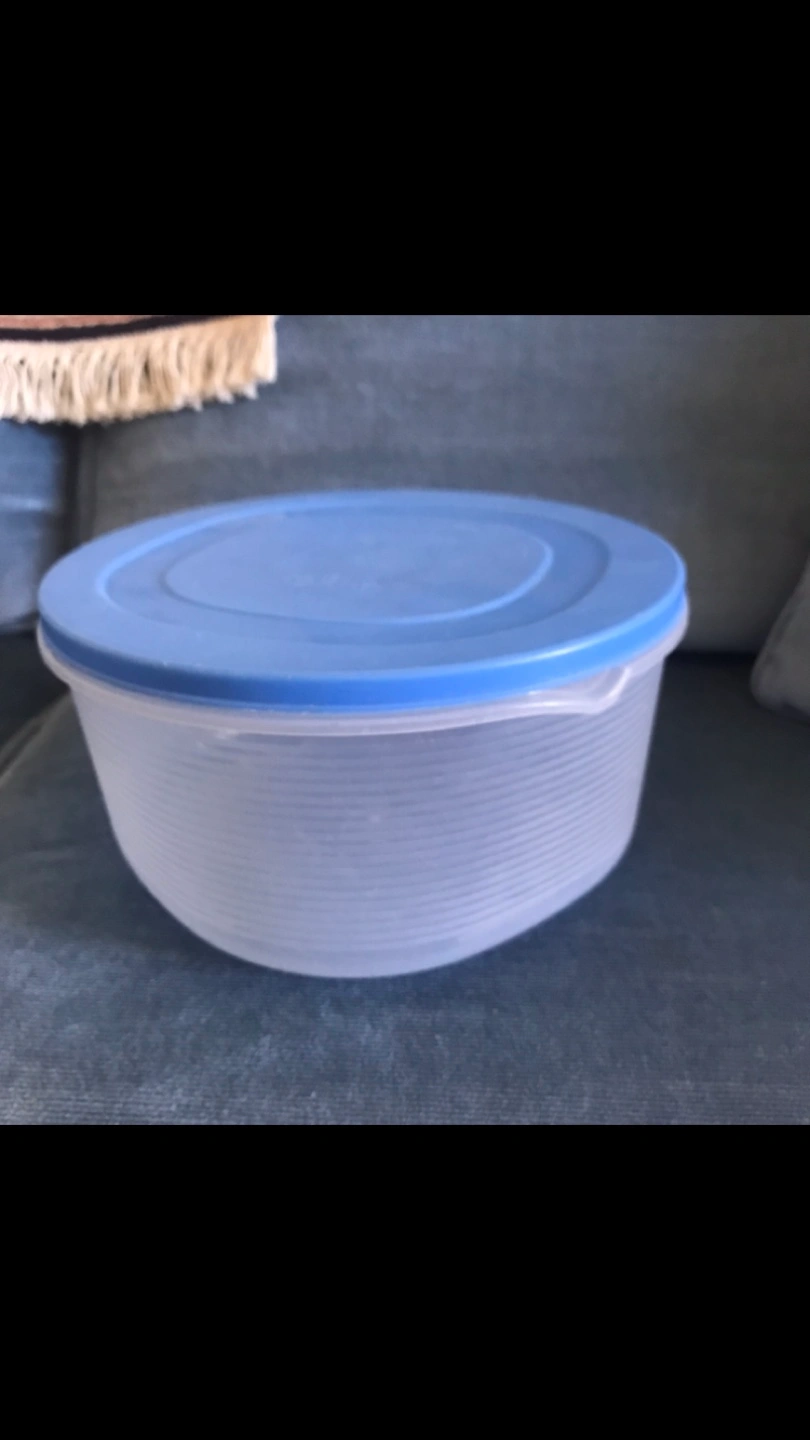 ✨FREE: Round Tupperware Container with Blue Lid.