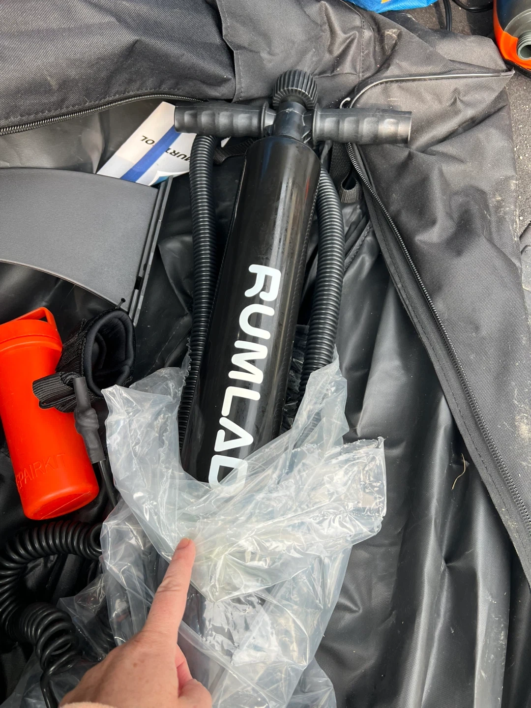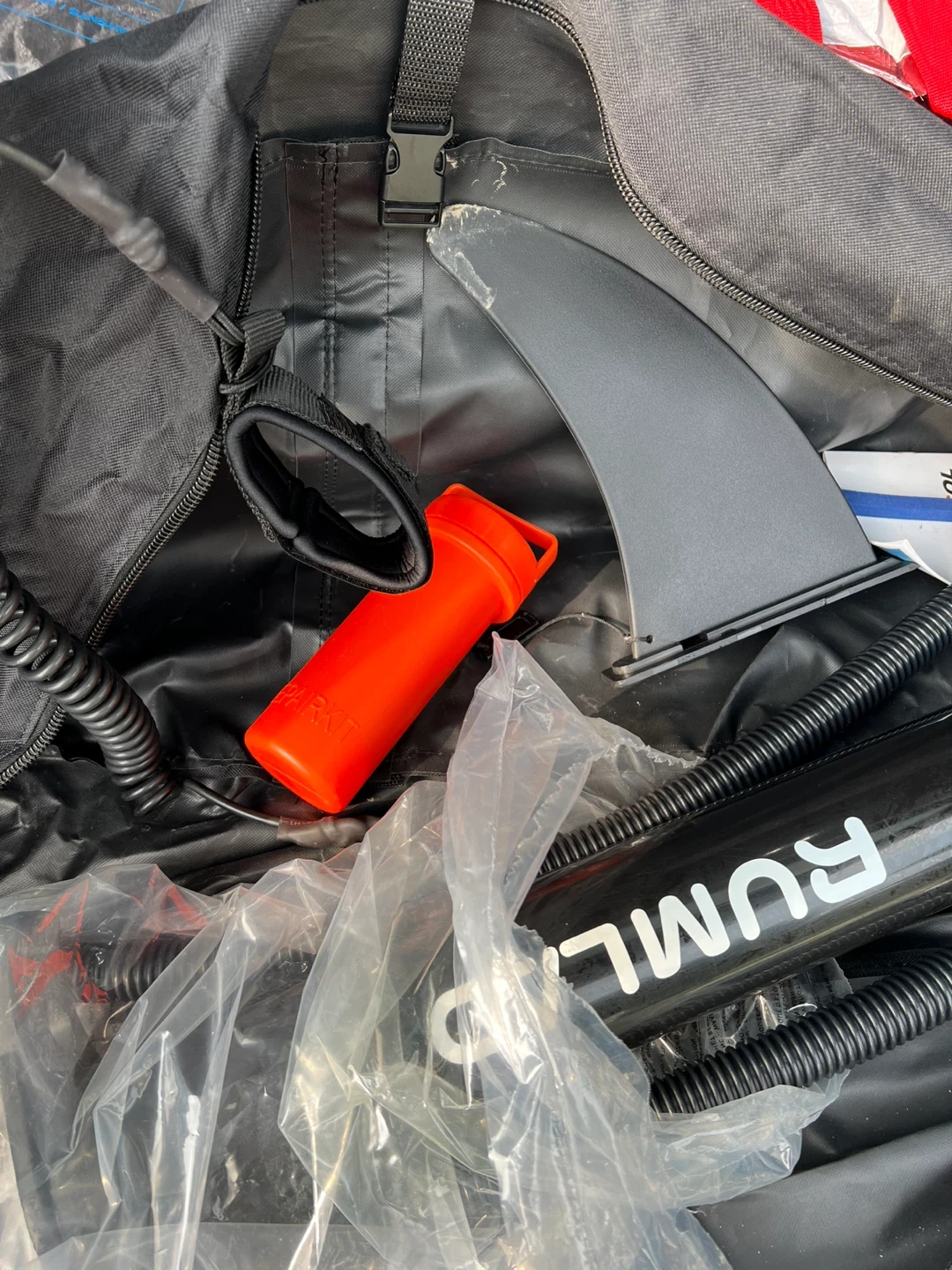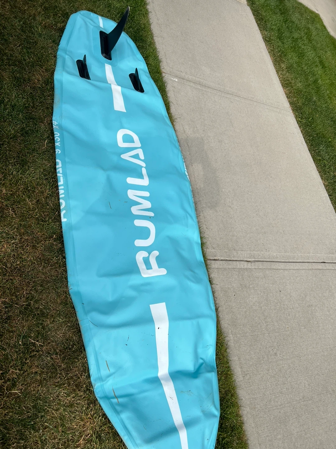 Selling a Rumlād inflatable stand-up paddle board. It comes with all the accessories you need to get out on the water, including a pump, paddle, and fin. Great for enjoying the summer weather! Used 1 time only. 10x30x4