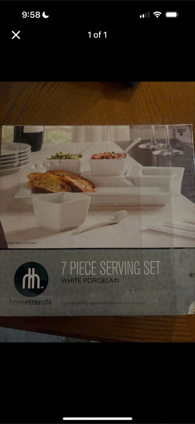 Selling a Home Trends 7 piece serving set made of white porcelain. Great for serving appetizers, desserts, fruit and more! Originally bought for $9.97