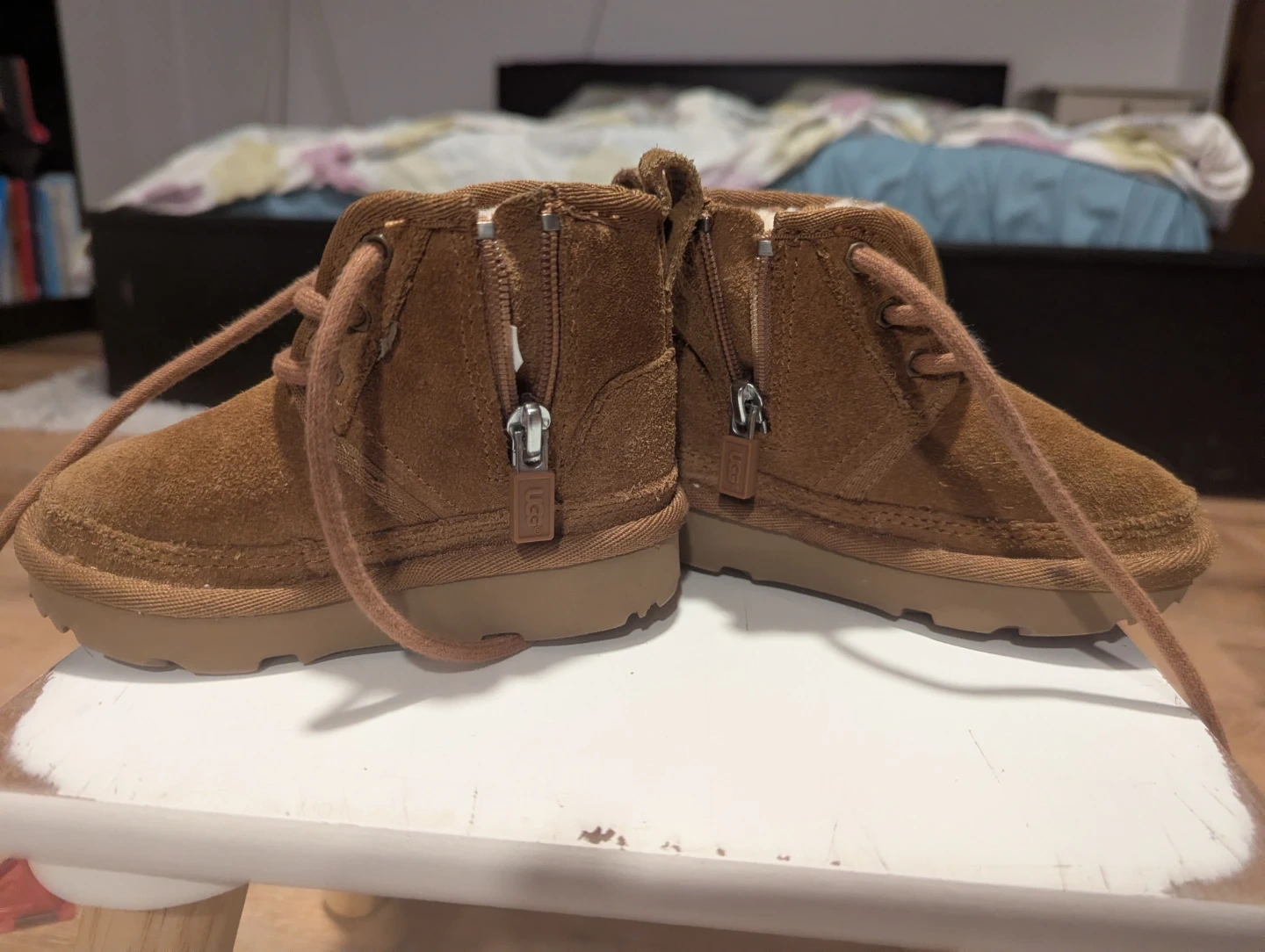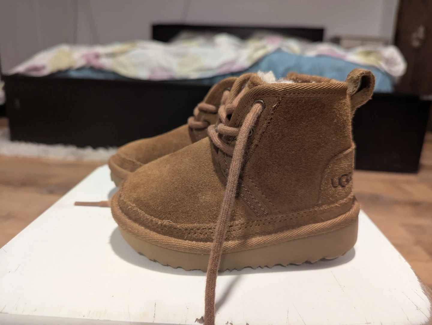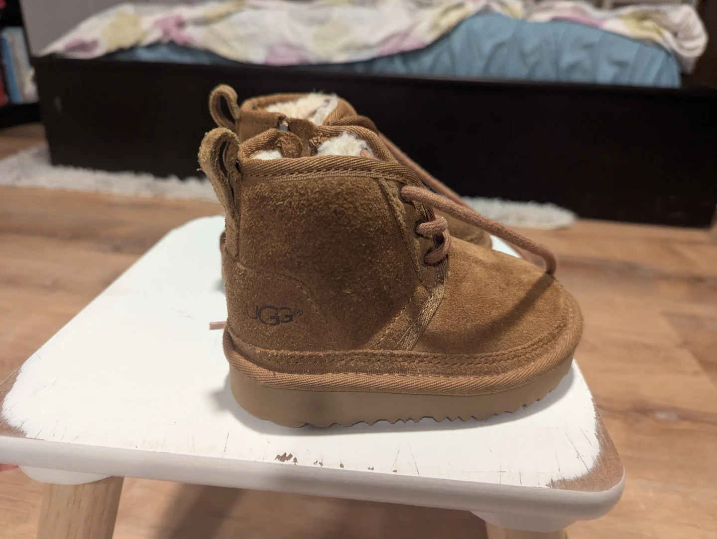 These UGG toddler Chukka boots are in great condition and ready for a new adventure! They're a classic brown color and feature a cozy lining to keep little feet warm and comfy.