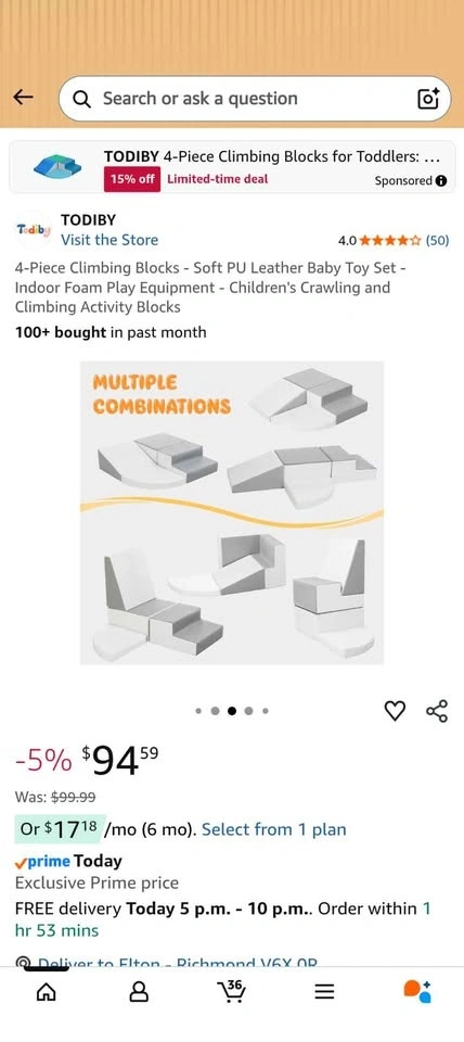 Buy & Sell4-Piece Climbing Blocks - Soft PU Leather Baby Toy Set4-Piece Climbing Blocks - Soft PU Leather Baby Toy Set$60Open box, like new. Pick up in Richmond near Walmart.WHERE TO MEETWalmart SupercentreView MapSELLERverifiedEltonW Camble29020 reviews0 chats·0 favorites·9 viewsSEND CHAT TO SELLERHi Elton! I’m interested in your listing.Hi Elton! I’m interested in your listing.Get the Karrot app to chatSign In to chat