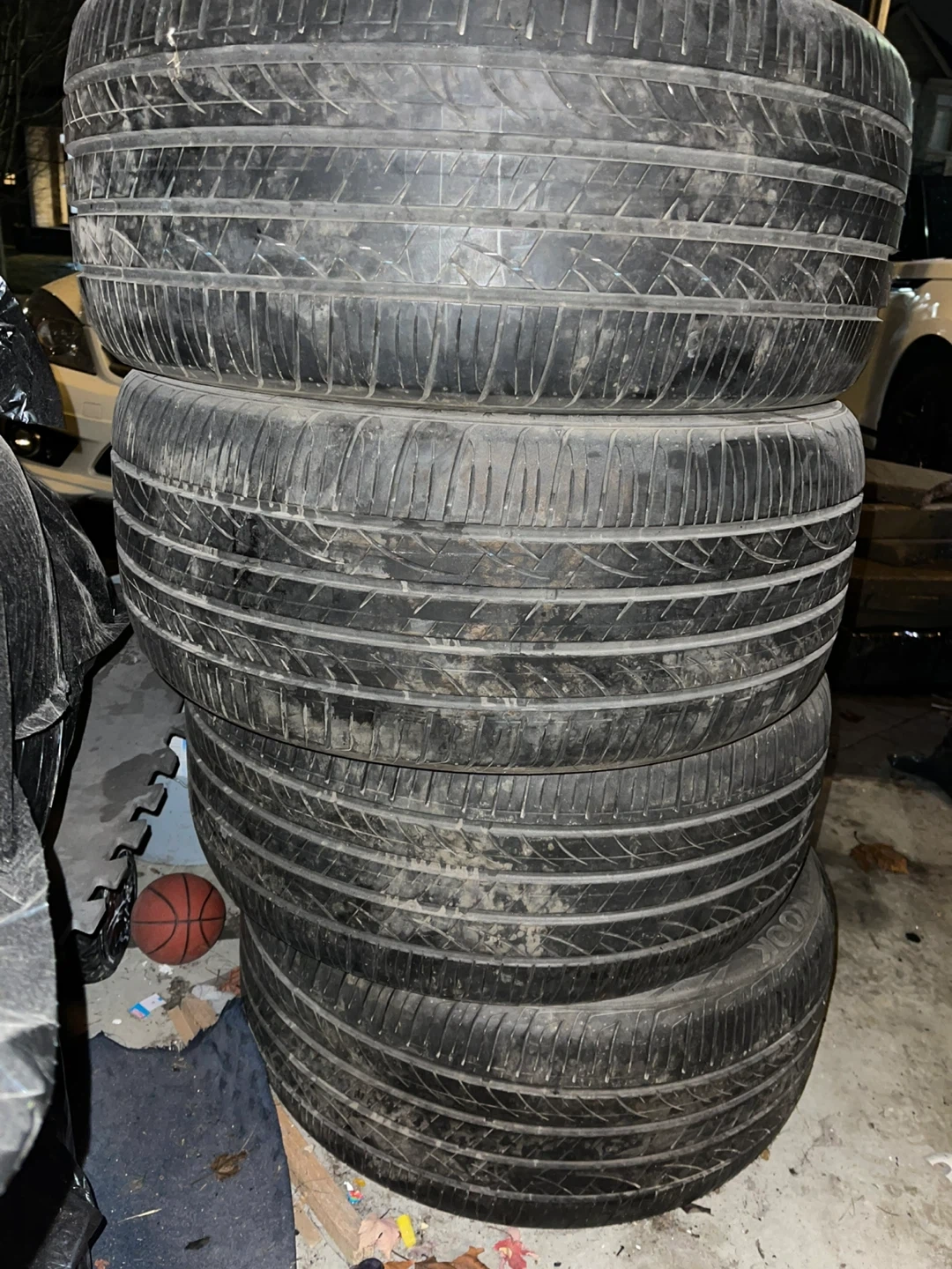 Four Hankook Ventus S1 Noble 2 all-season tires. They're radial and tubeless. Used tires, good tread remaining.