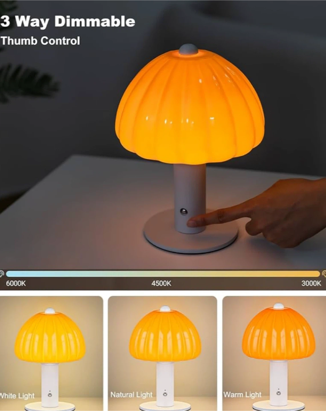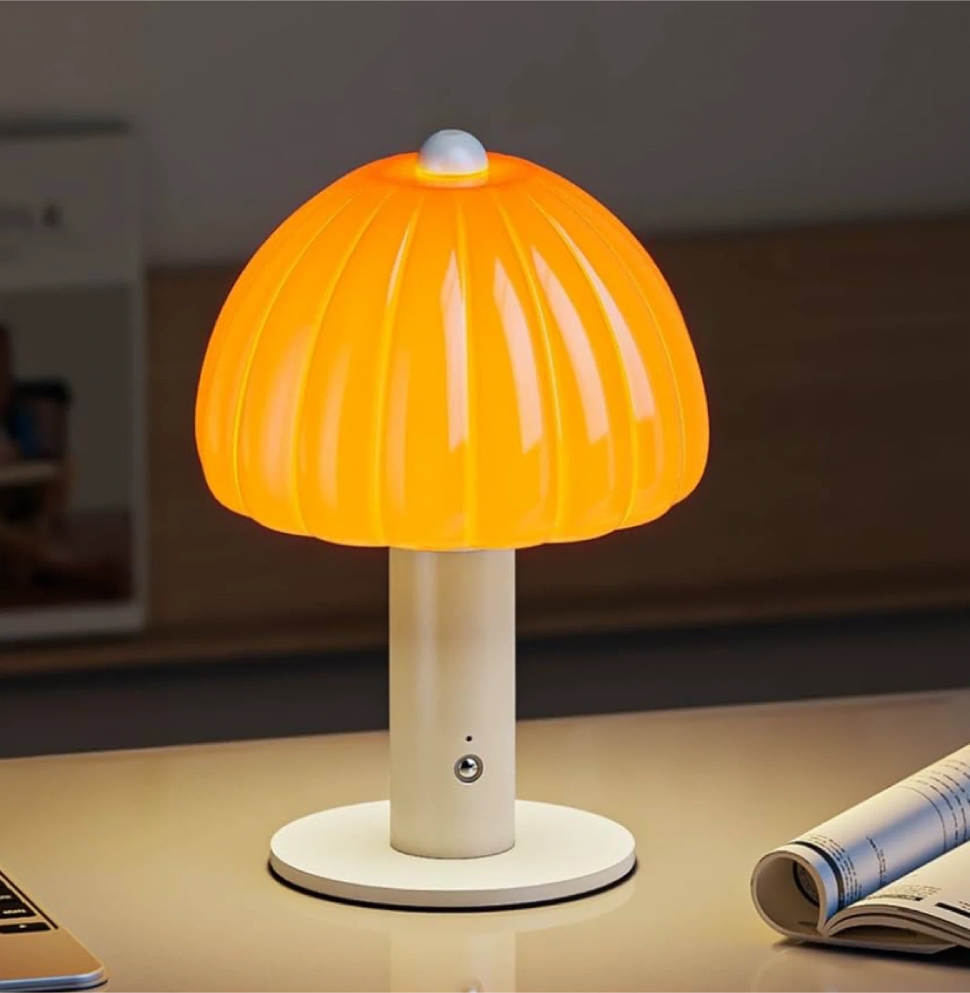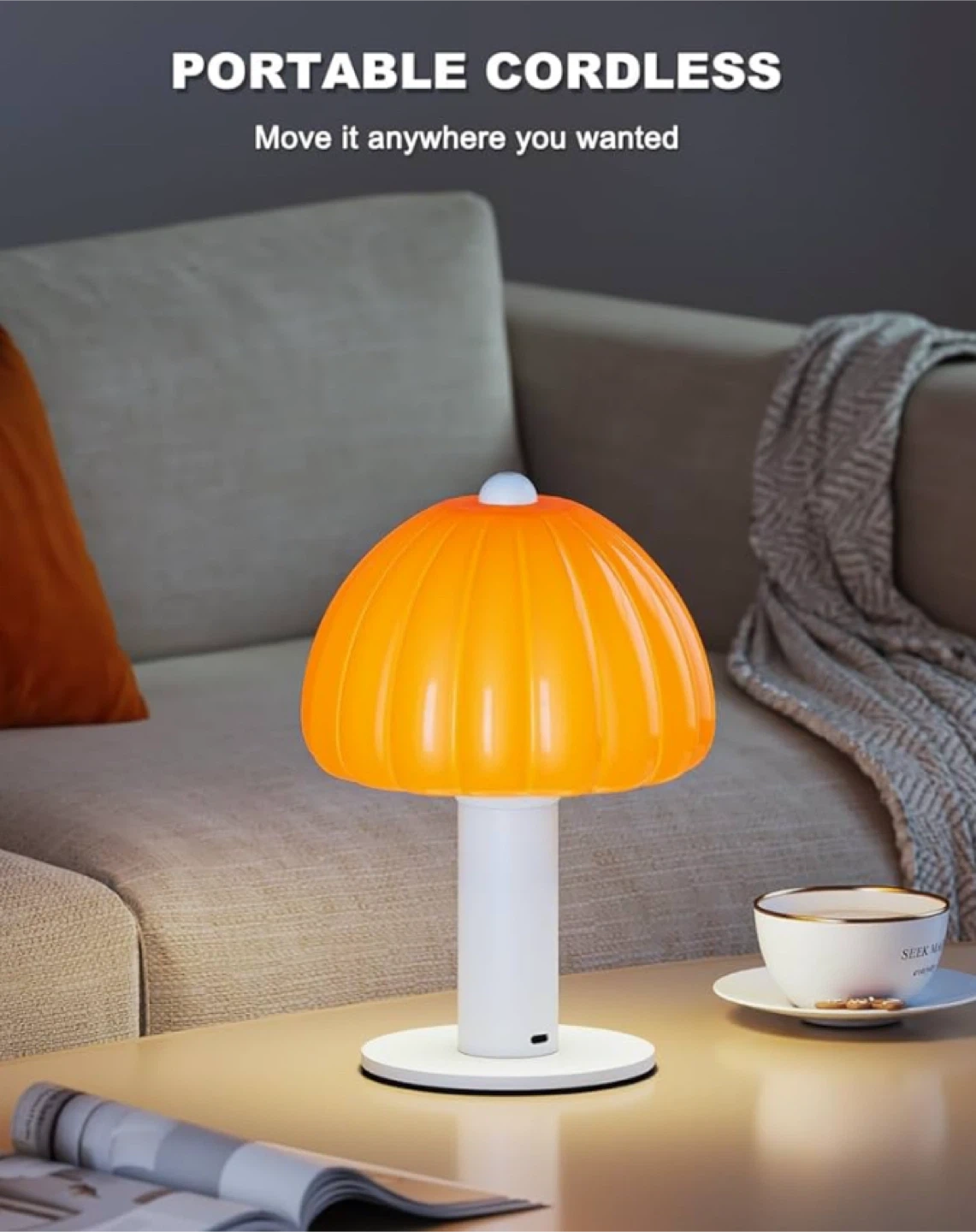 This FANHAO glass pumpkin light is a super cute bedside table lamp! It features a 3-colour dimmable setting. It's portable and cordless with a 4000mAh rechargeable battery.