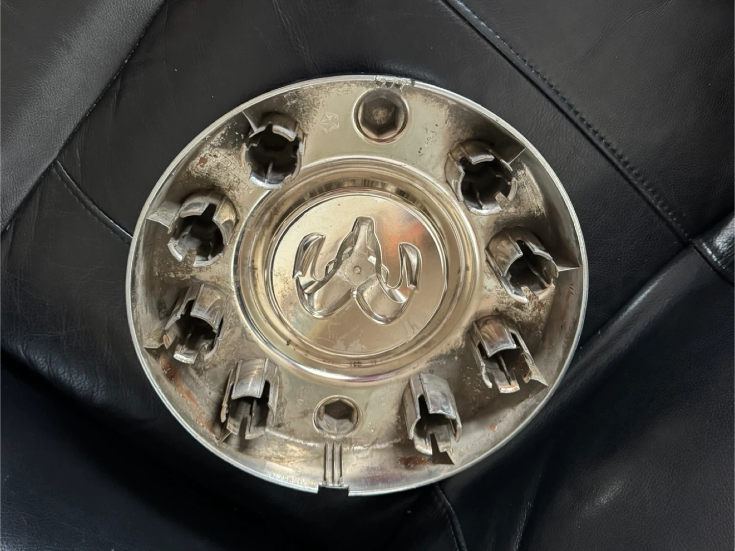 This is a chrome hubcap wheel cover with the Dodge Ram logo. It's a direct replacement part. Fits most Dodge 4500 Ram trucks.Located in Penticton