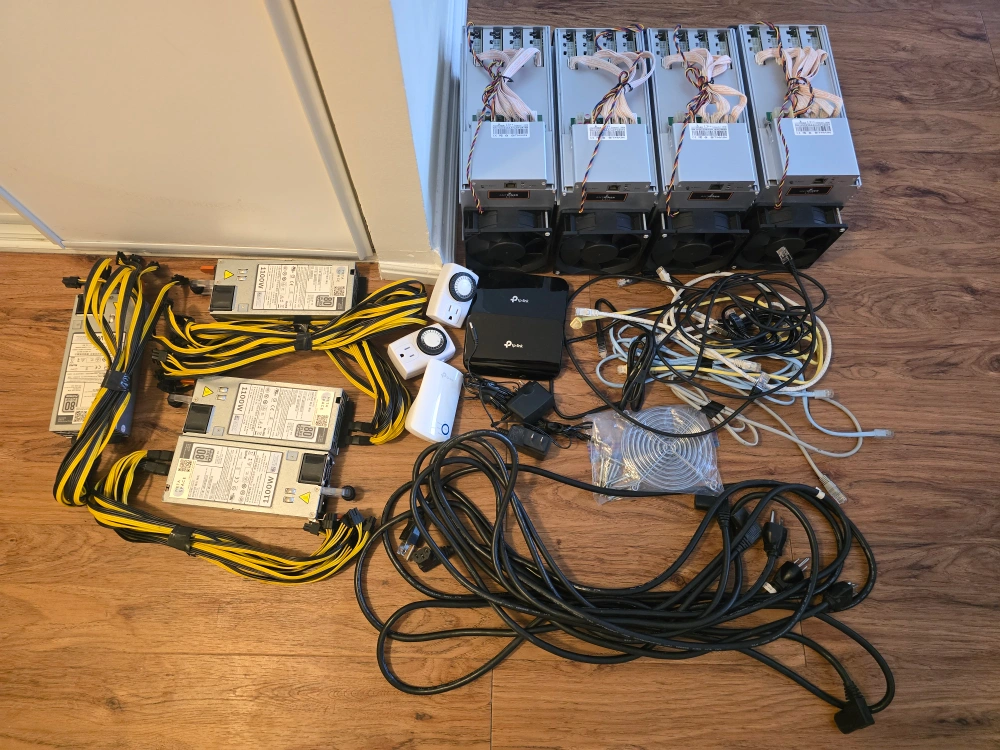 - 4x Antminer L3++ (504–580 MH/s, ~800W each, Scrypt algo) with power supplies, ethernet cables, and all necessary cables. Equipped with Blissz firmware for adjustable fan speed to save on bills.