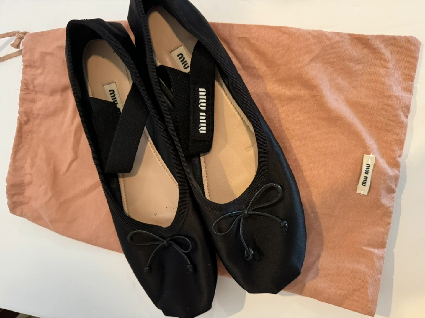 Miu Miu Black Satin Ballet Flats with Strap - Size 38.5