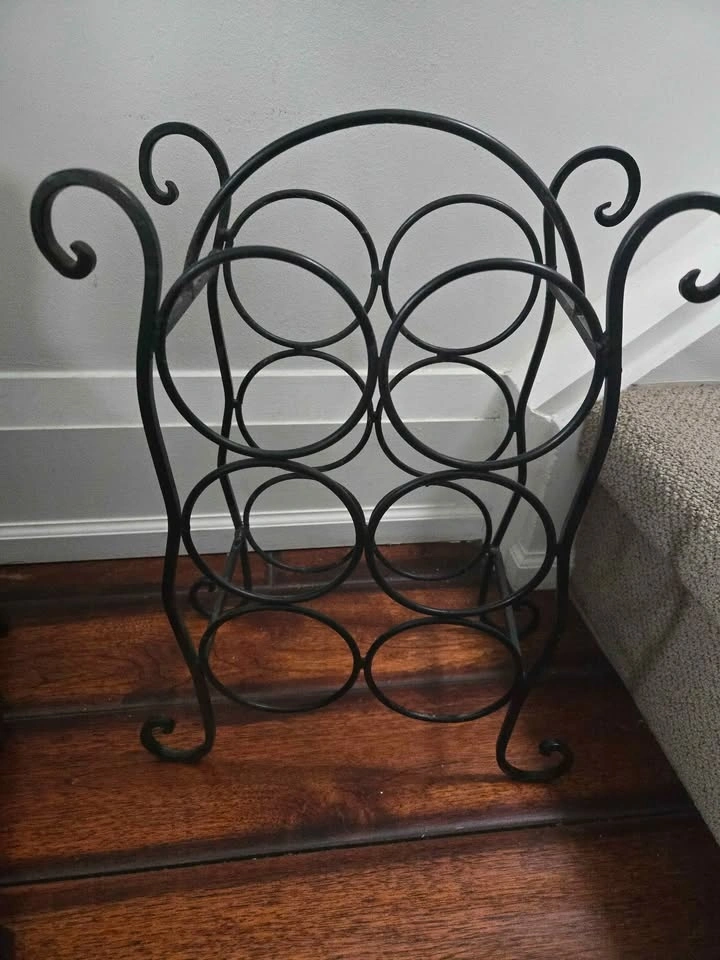 3. Classic solid metal ornament wine rack. 12" wide, 16" tall, 6" deep.