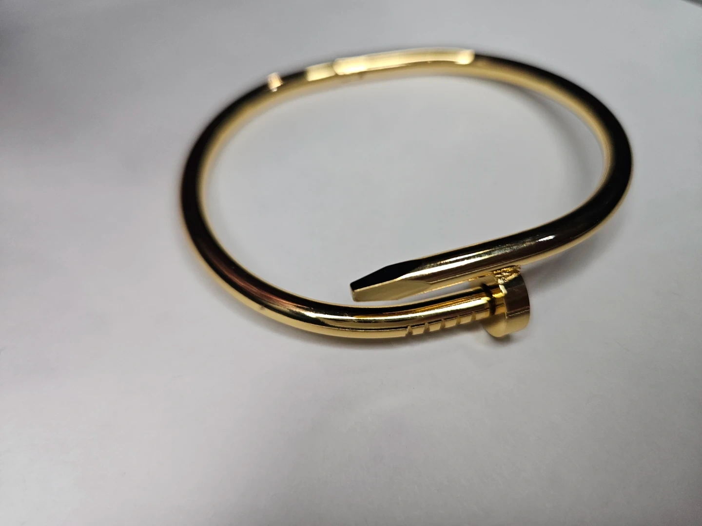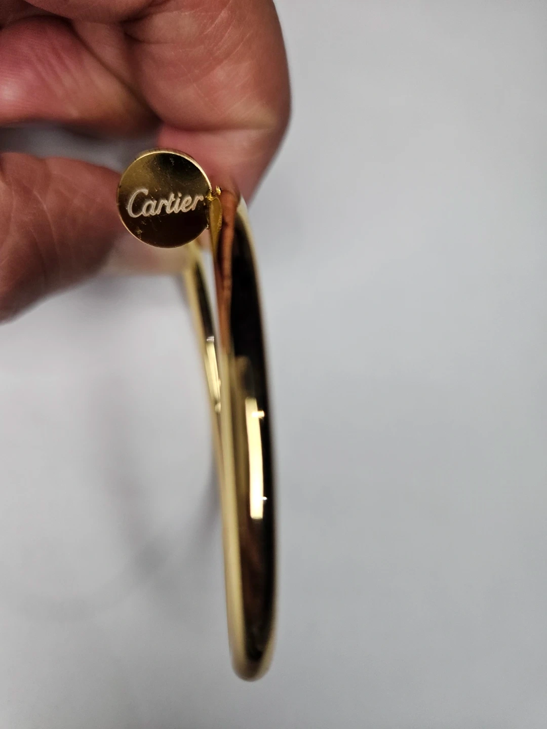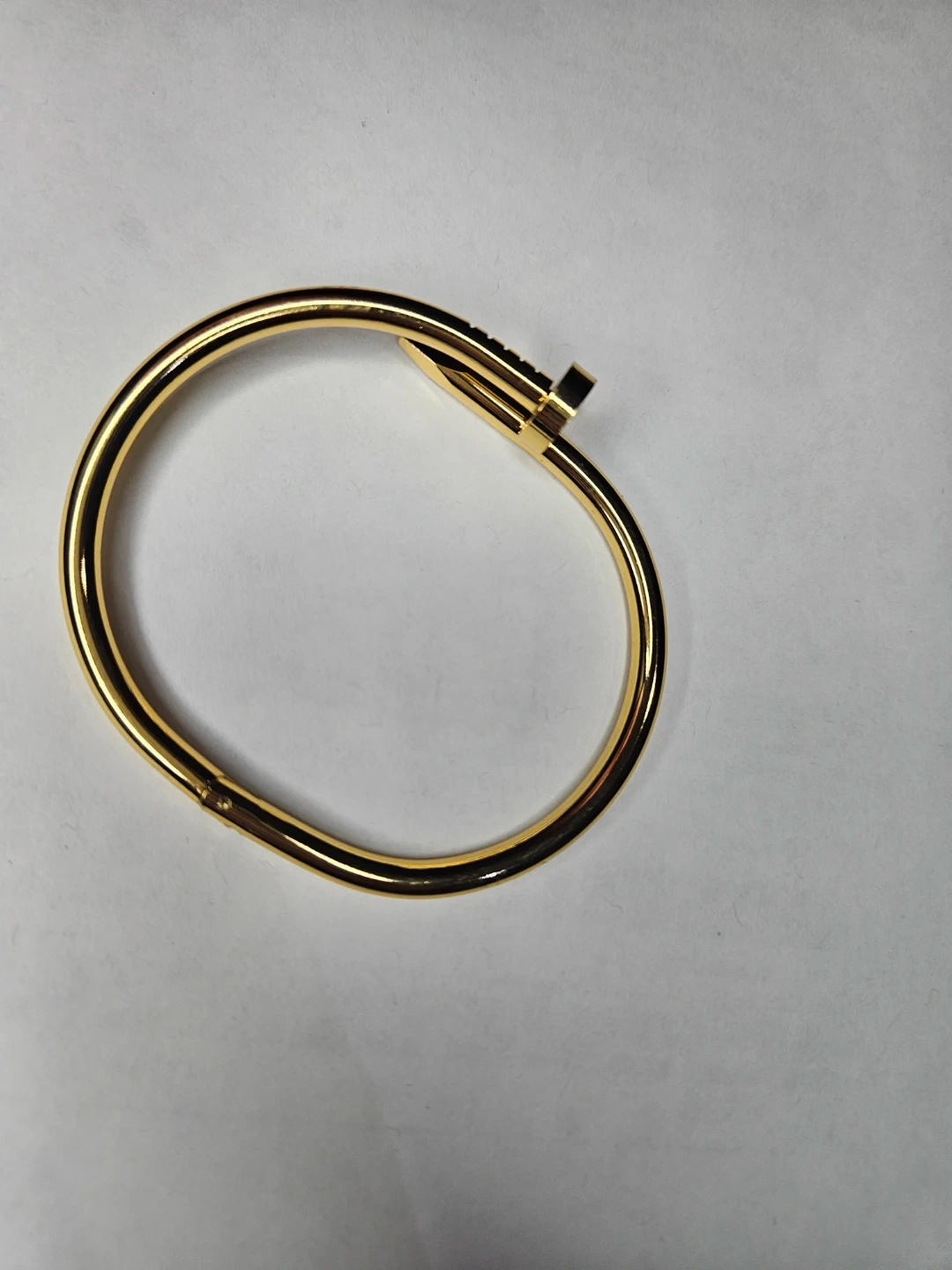 Gorgeous Cartier Juste un Clou bracelet in gold. It's a classic design that's always in style. Perfect for adding a touch of luxury to any outfit!