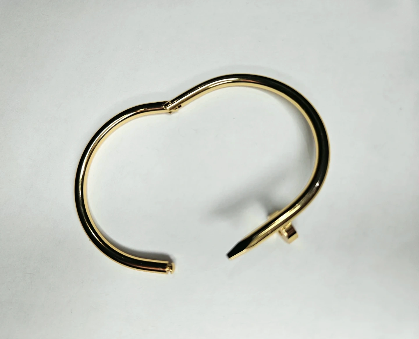 Gorgeous Cartier Juste un Clou bracelet in gold. It's a classic design that's always in style. Perfect for adding a touch of luxury to any outfit!