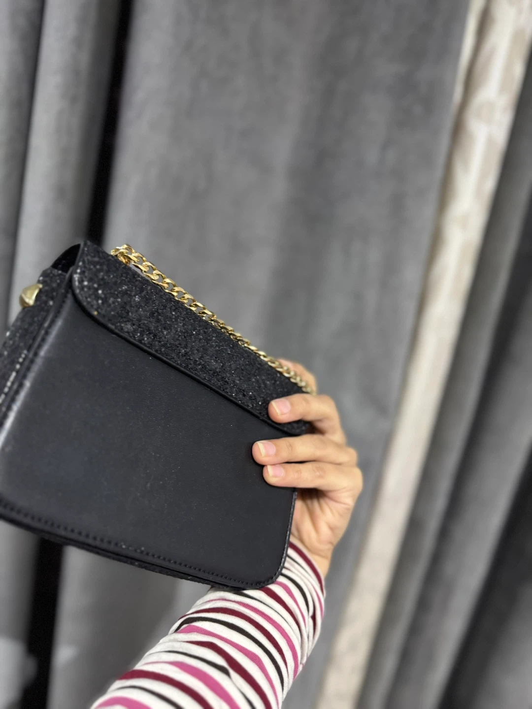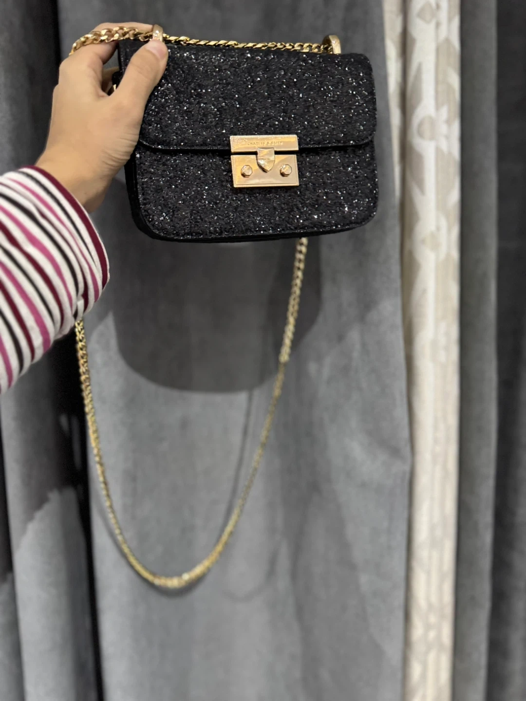Selling a Charles & Keith black glitter chain bag. It's in great condition and perfect for adding a touch of sparkle to any outfit! The gold-tone chain complements the glitter beautifully