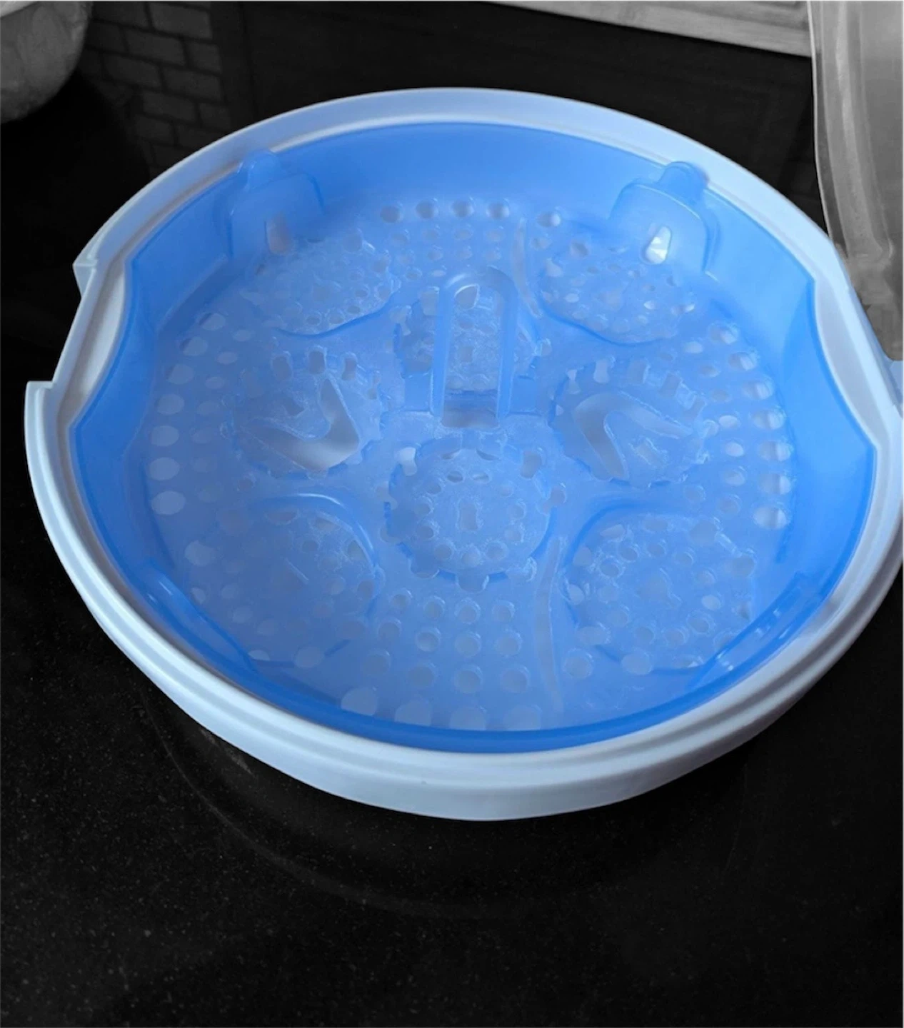 Used only a handful of times, as this was a secondary unit for the cottage. Perfect working condition. BPA & chemical free — uses steam to sterilize bottles, pacifiers, etc. in just 4 minutes!
