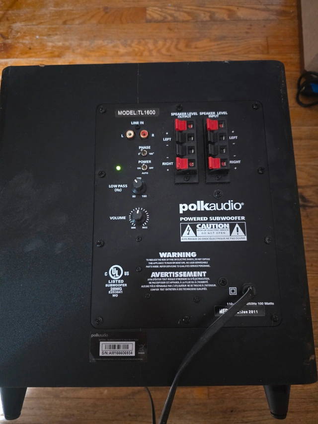 Polk Audio 8" Subwoofer TL1600 Tested working In good condition OPEN TO ANY AND ALL TRADE OFFERS could be anything Pick Up Sarnia Rd And Western Rd Area
