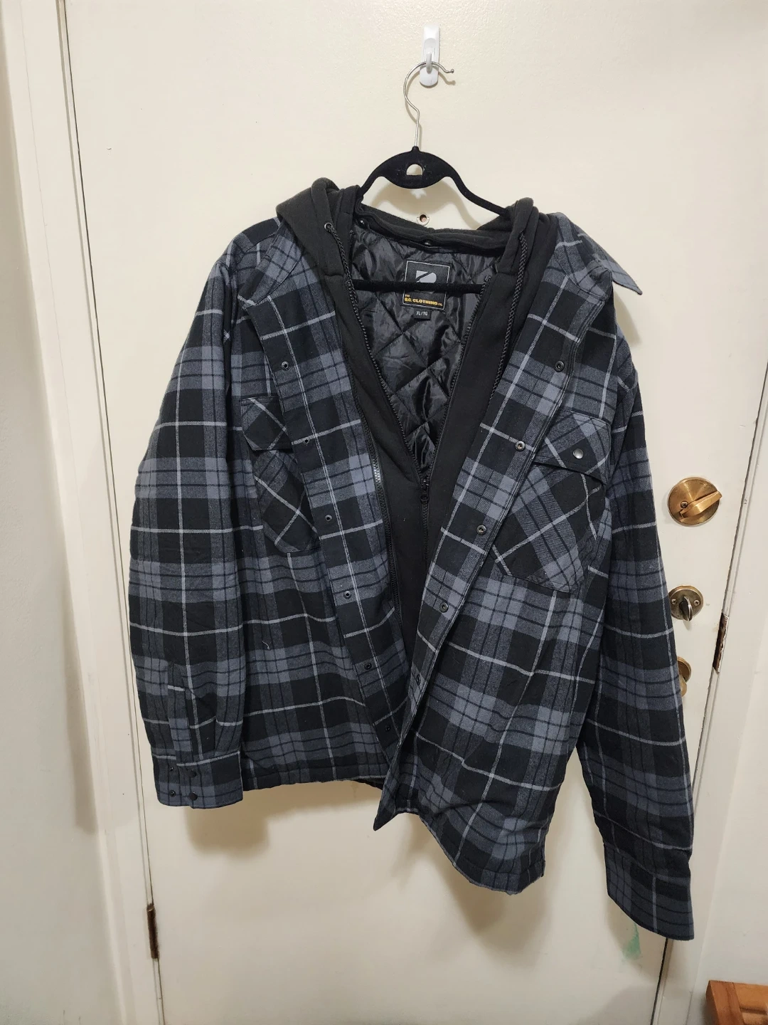 68Selling a B.C. Clothing Co. jacket in size XL. It features a plaid pattern and a hood. 3 in 1.