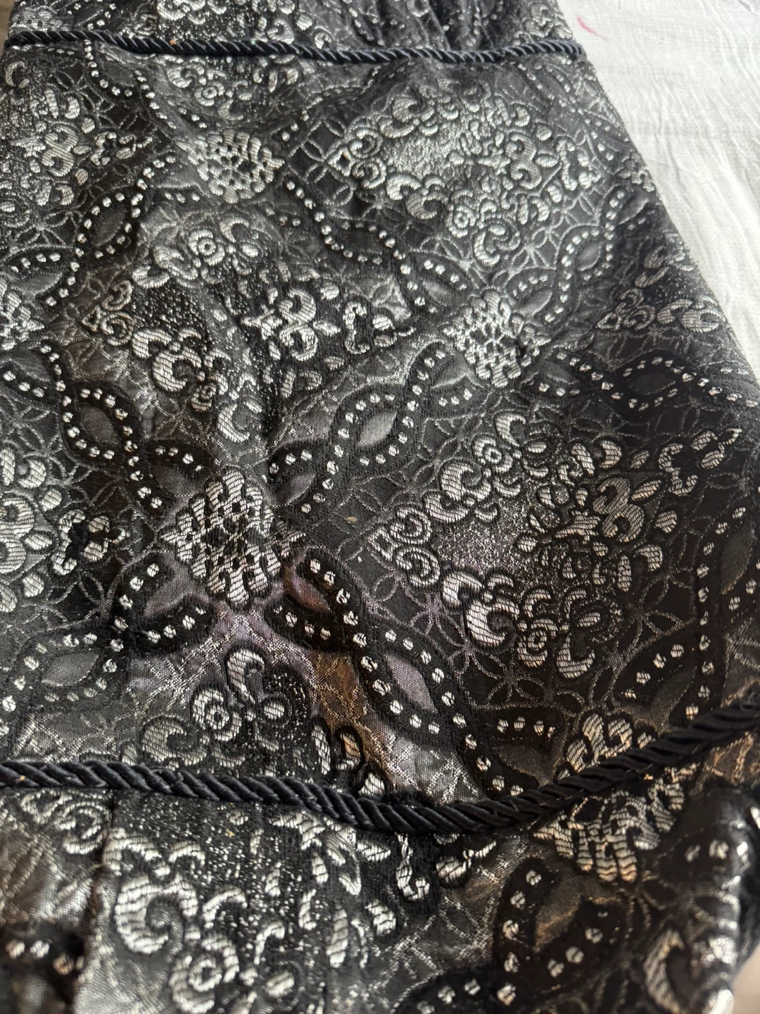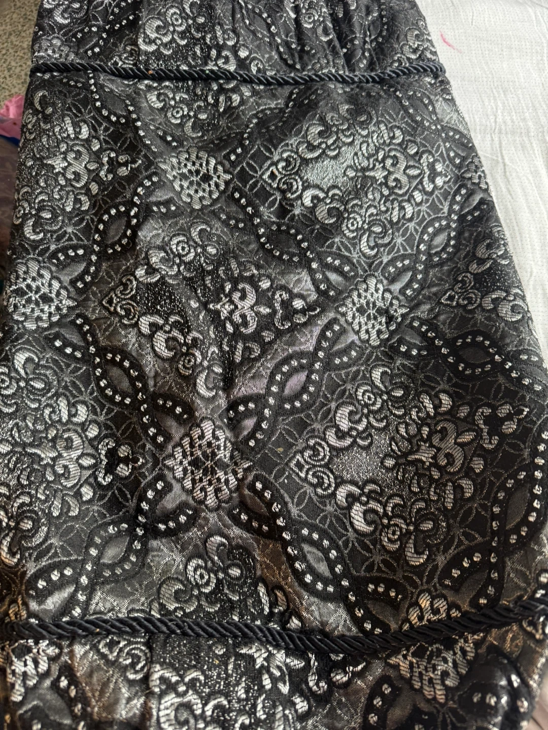 Gao takkia cover. Traditional round pillow cover This is a piece of fabric with a beautiful black and silver pattern. It has a textured feel