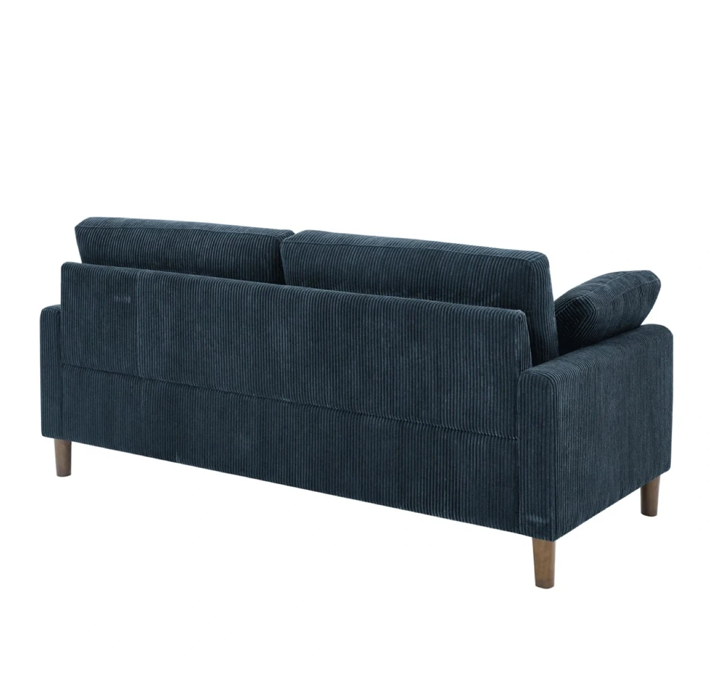 Selling a lovely navy corduroy sofa! It's relatively new and in great shape and would be a cozy addition to any living room.