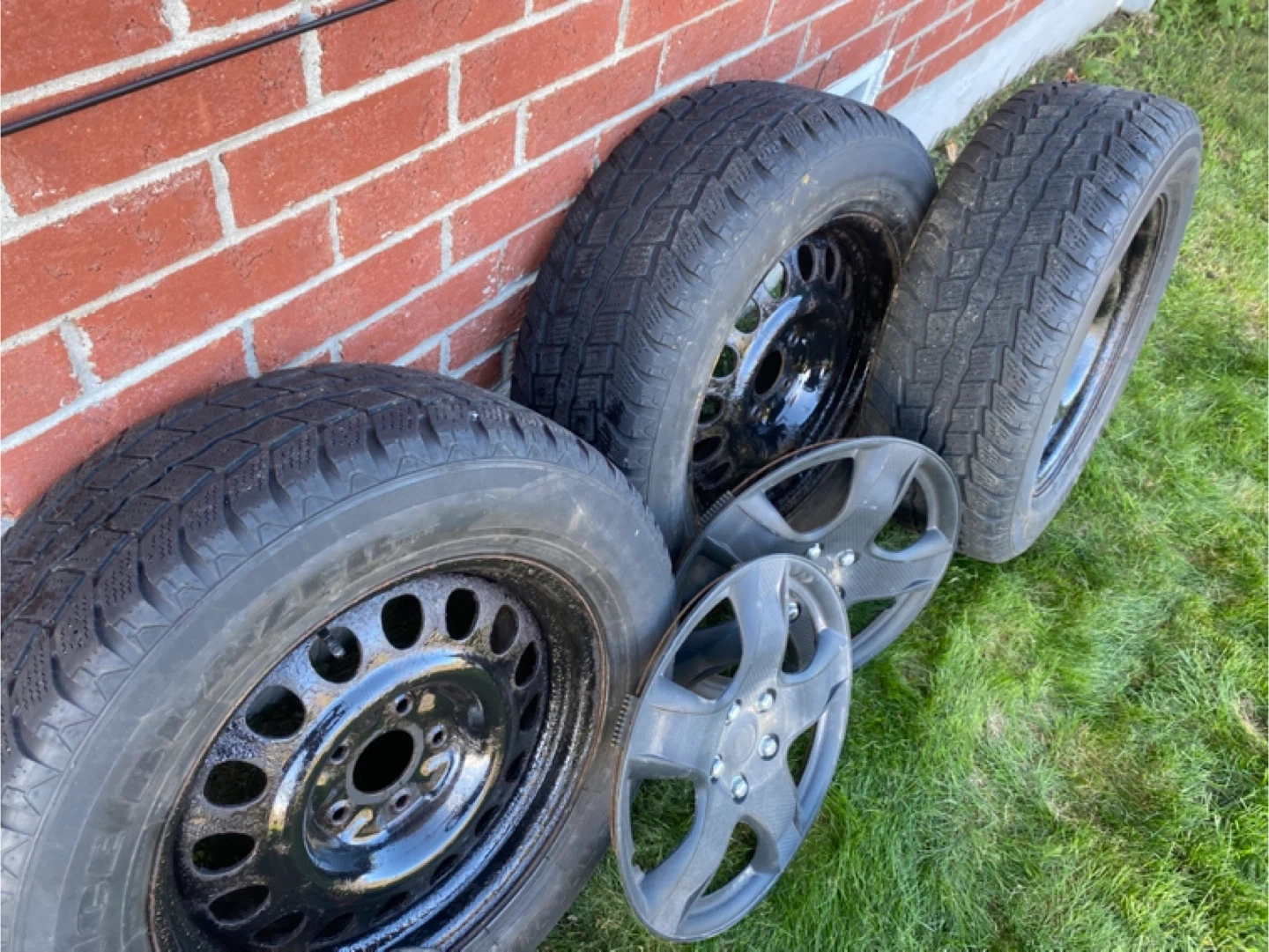 Selling a set of 4 winter tires Rims with sensors .They're in good condition tire size 265 60R 18. Have at least one more left on them off a 2019 Grand Cherokee $150.00.