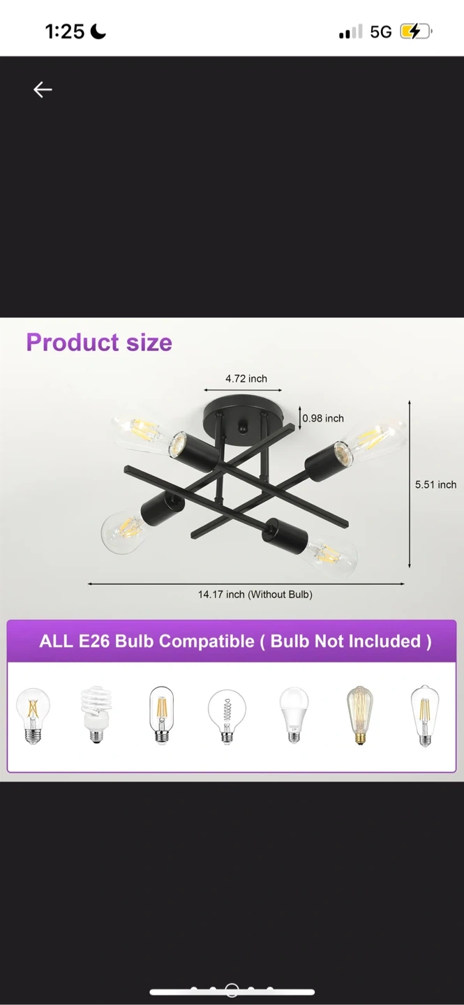 137Wayfare Price $130 Hannah-Jayne 14.17'' Sputnik Modern Linear Flush Mount Selling a stylish black industrial ceiling light fixture. It's a great way to add a modern touch to any room. - Dimensions: 4.72 inch height, 14.17 inch width (without bulb) - Compatible with all E26 bulbs (bulbs not included)